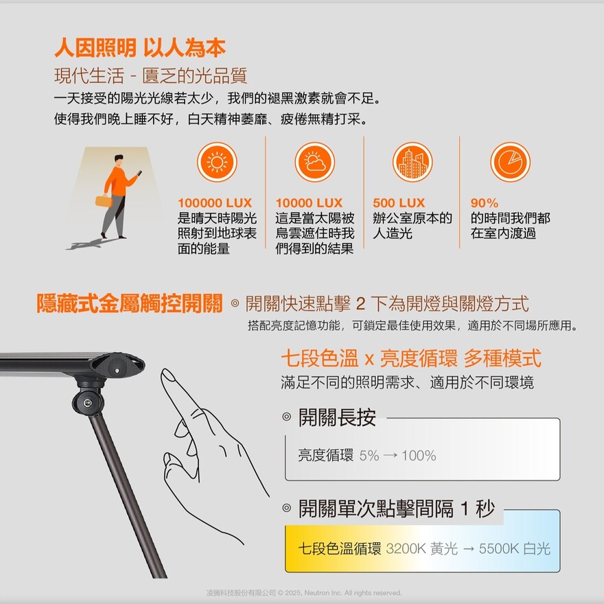 [凌騰科技]歐司朗德勒斯登調光調色LED 6.5W護眼檯燈 極致款