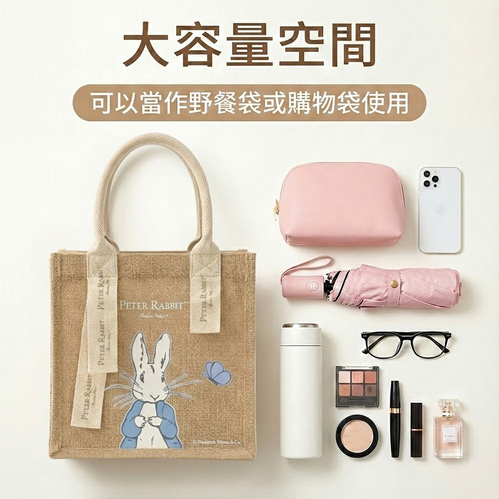 【世豐】PETER RABBIT 比得兔麻布手提袋 手提袋 購物袋 環保購物袋 手提包 通勤托特包 午餐袋 環保黃麻袋