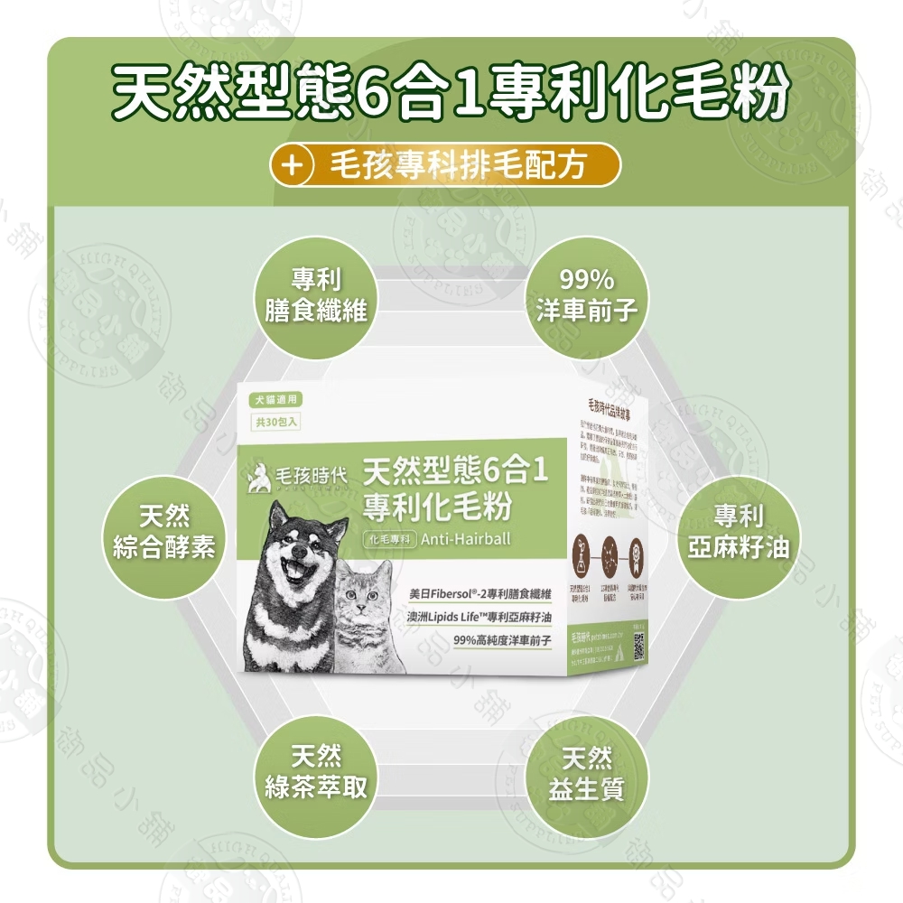 犬貓天然型態6合1專利化毛粉30包/盒 貓咪化毛 排毛順毛 毛球保健 腸胃保養 保健品 寵物保健 犬貓適用