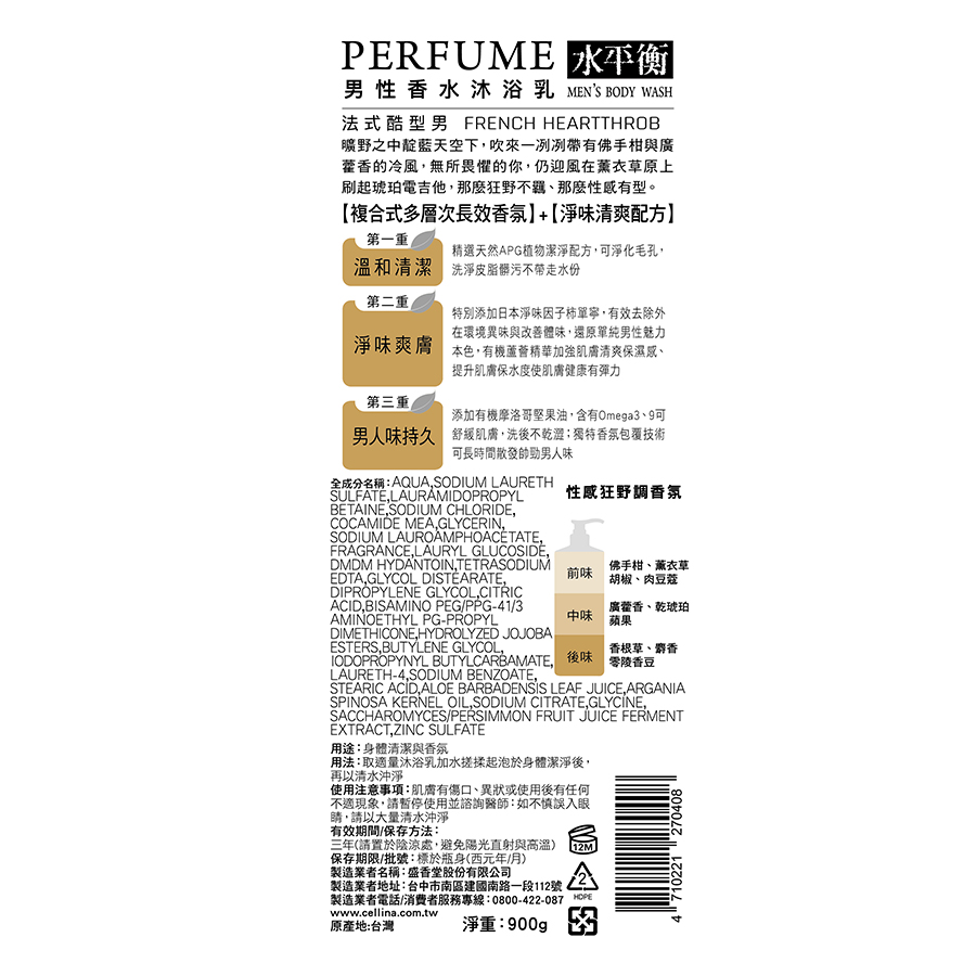 水平衡男性香水沐浴乳-法式酷型男