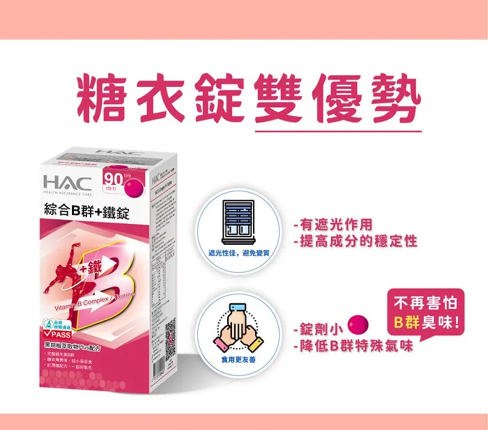 糖衣錠無B群特殊氣味,錠小易吞食。