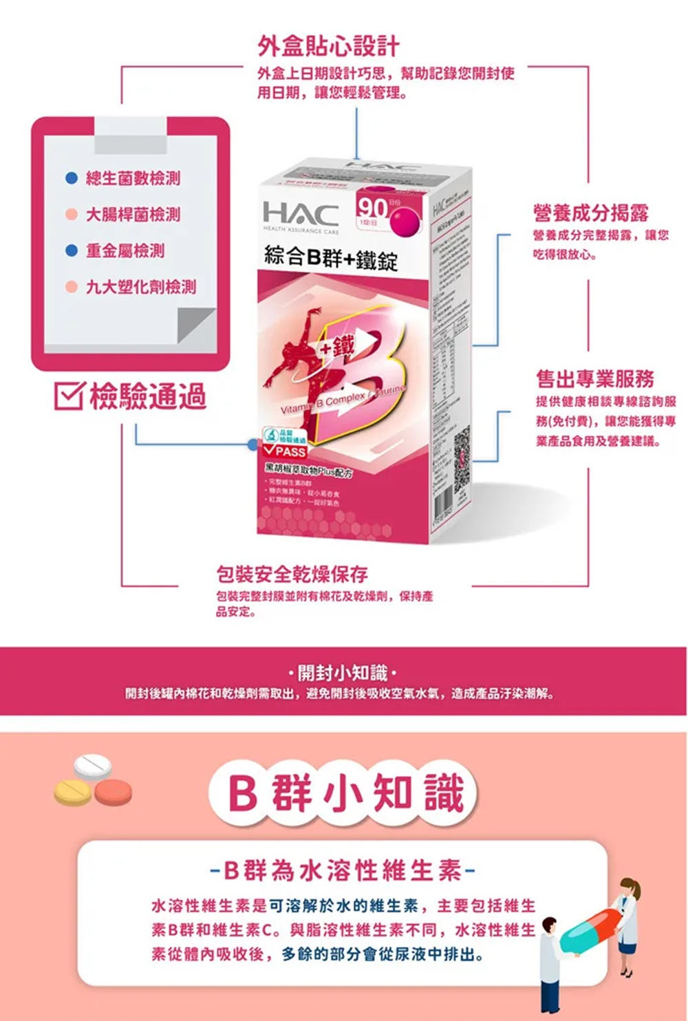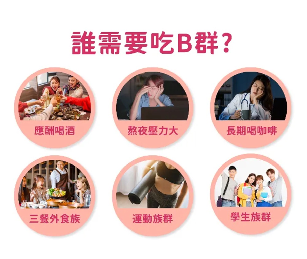 維他命B群為維他命B1、B2、B6、B12等營養素的總稱,能維持胺基酸及能量代謝,維持皮膚、心臟及神經系統的正常功能。