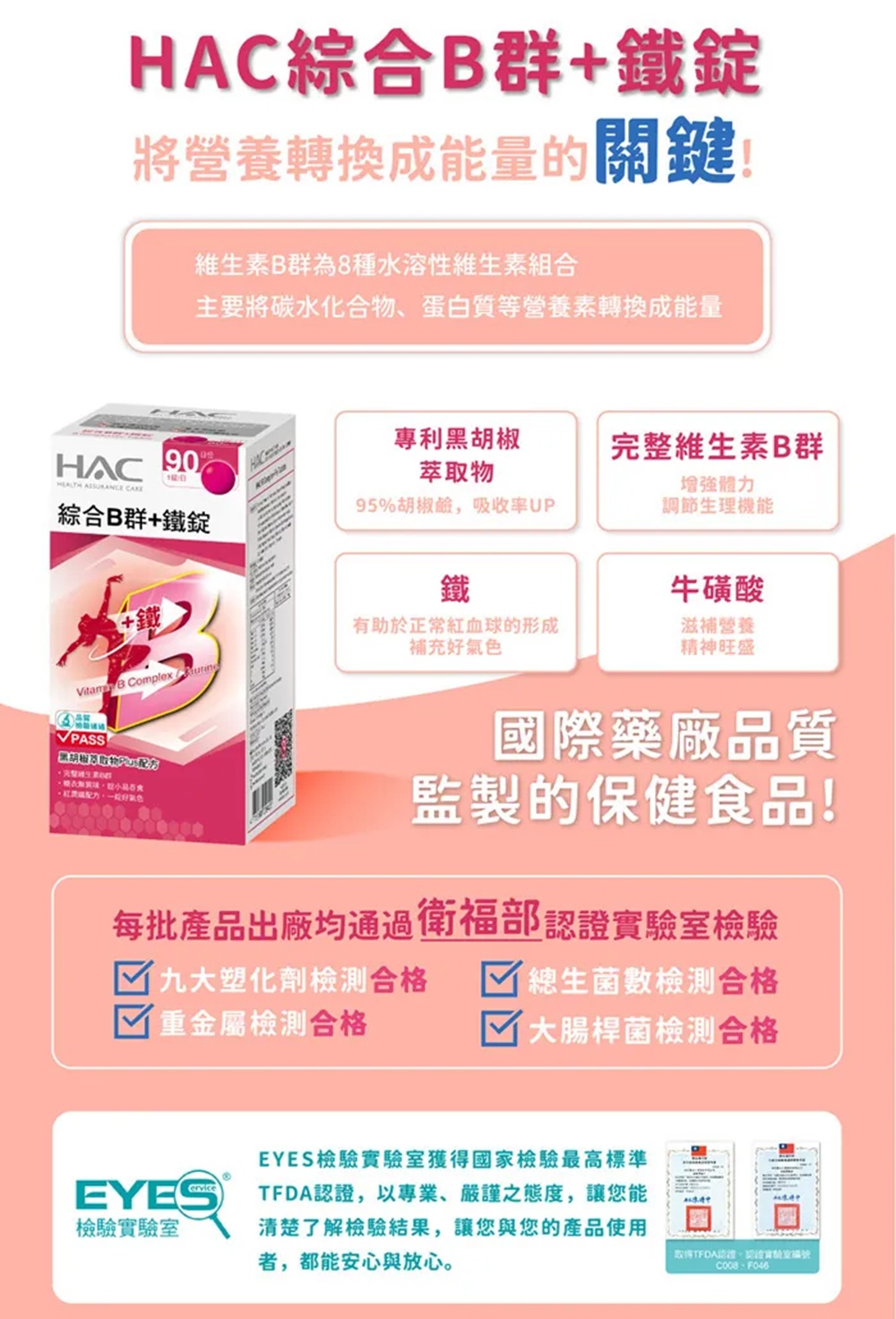 [佑全保健藥妝]永信HAC綜合B群+鐵錠90錠/瓶