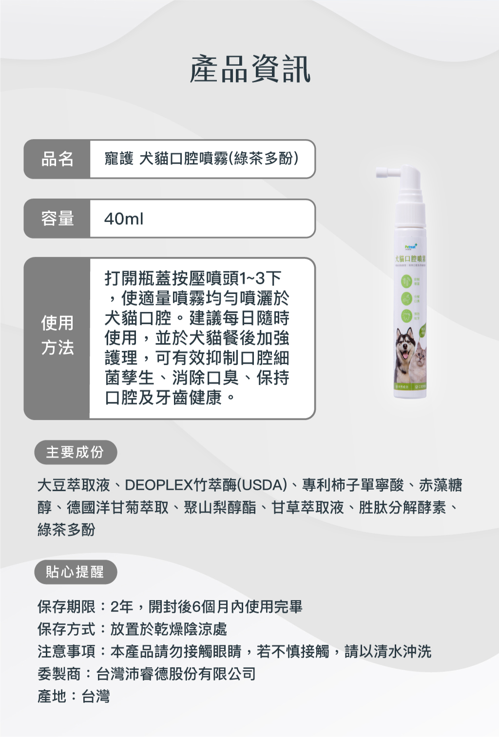 [沛睿德]寵護 犬貓口腔噴霧 40ml