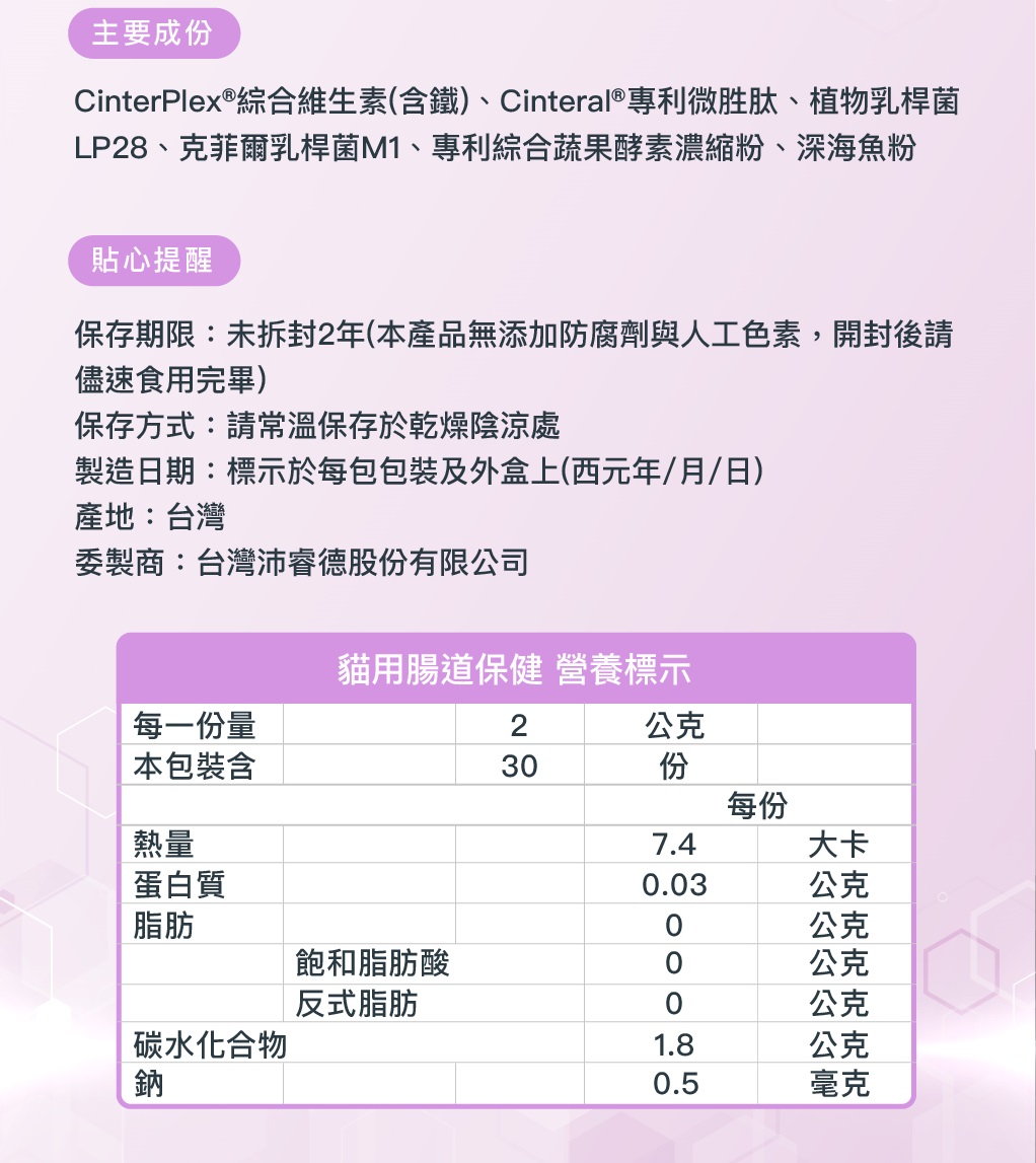 #寵物保健食品 #貓保健食品 #適合貓吃的益生菌 #貓腸道保養 #貓大便硬 #貓軟便 #體質敏感貓 #瘦小貓 #益生菌 #益生質 #後生元