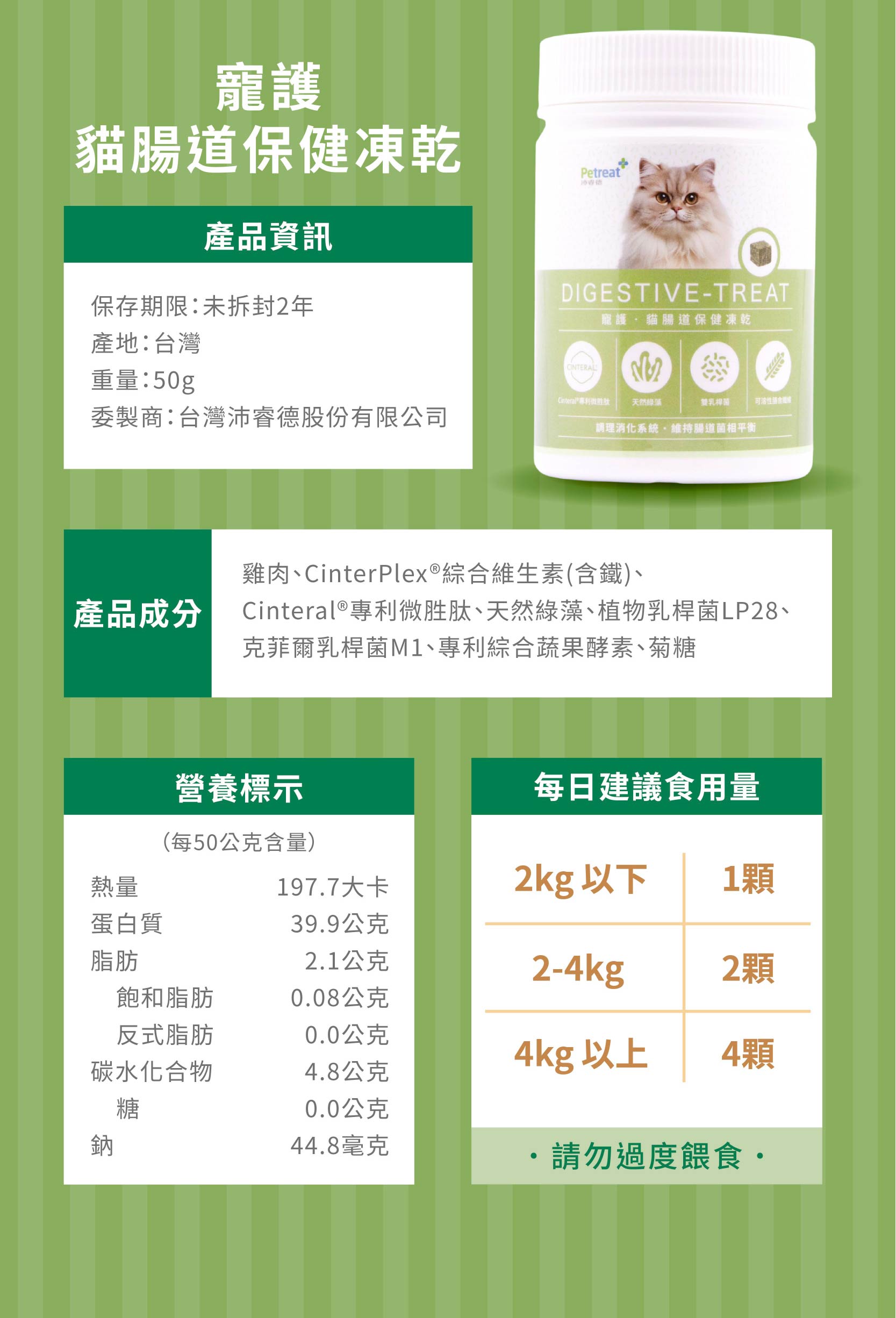 [沛睿德]寵護 貓腸道保健凍乾(添加天然綠藻) 50g