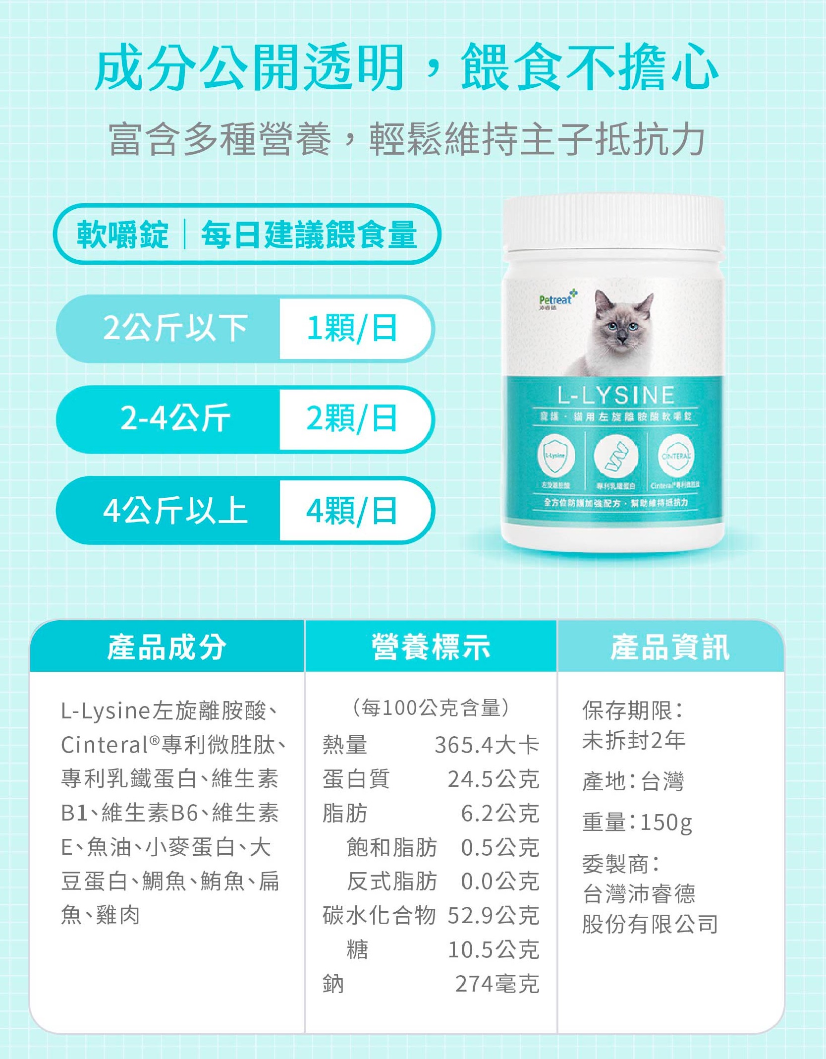 #寵物保健食品 #離胺酸 #貓每日必需胺基酸 #乳鐵蛋白維持免疫力加分 #貓呼吸道保養 #貓營養補充品 #貓免疫力 #貓皰疹病毒