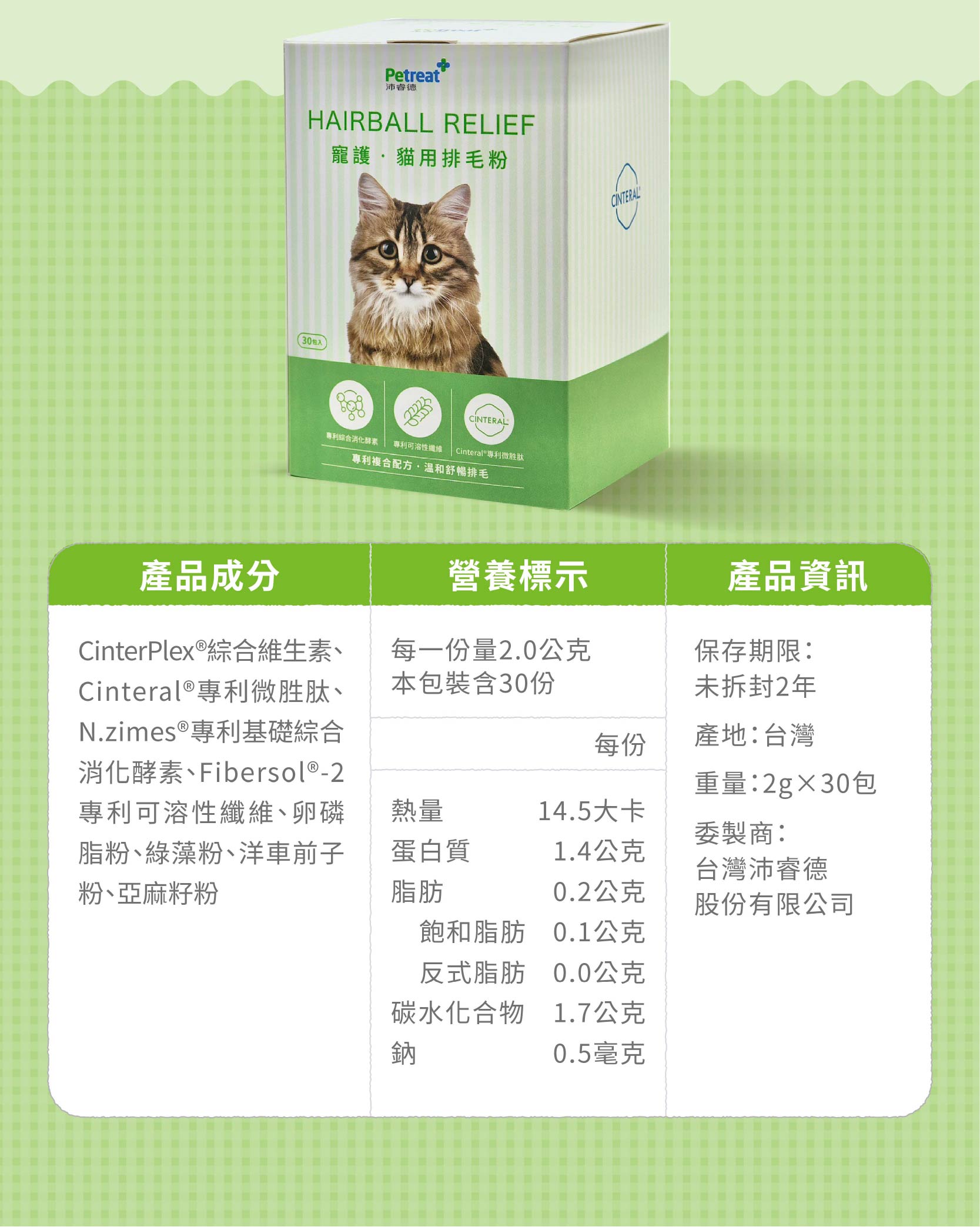 [沛睿德]寵護 貓用排毛粉 2g X 30包
