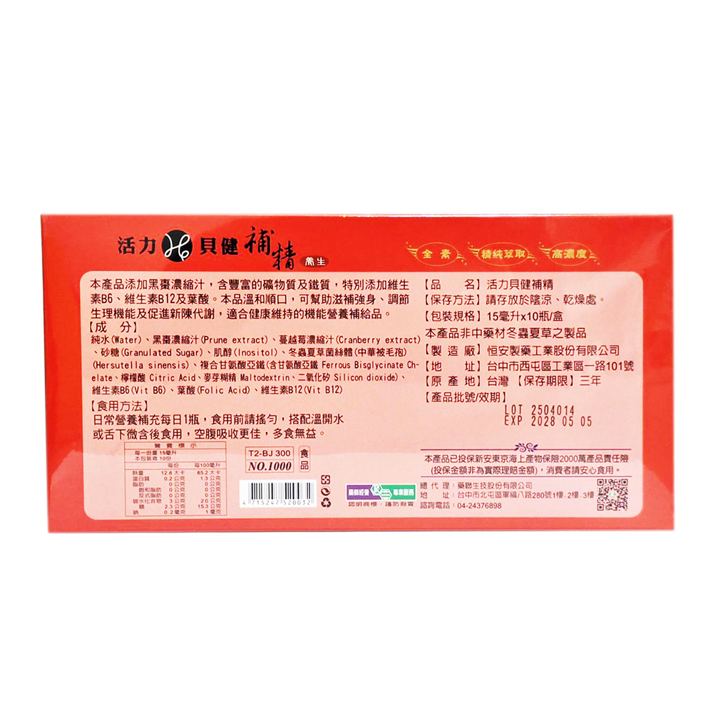 [正光藥局]活力貝健-補精 15ML*10支/盒