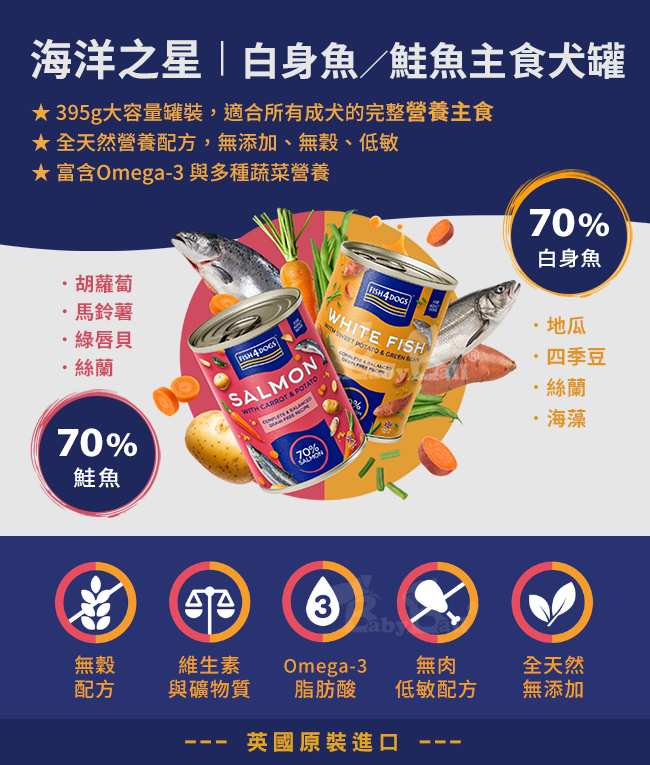 【倆寶貝精品館】海洋之星FISH4DOGS 無榖低敏 鮭魚主食犬罐-胡蘿蔔&馬鈴薯 395gx6罐