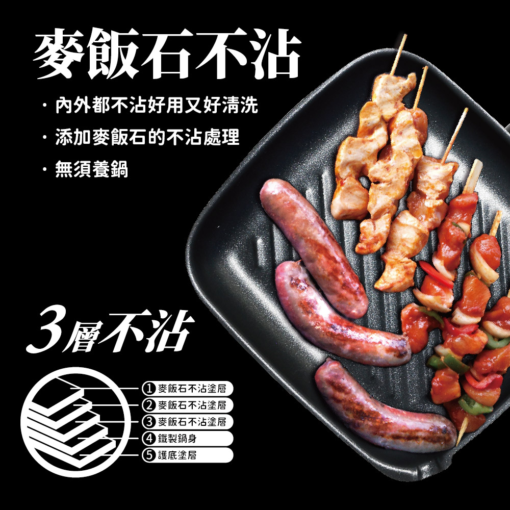 ◆鍋身材質:鐵製鍋身、麥飯石不沾。