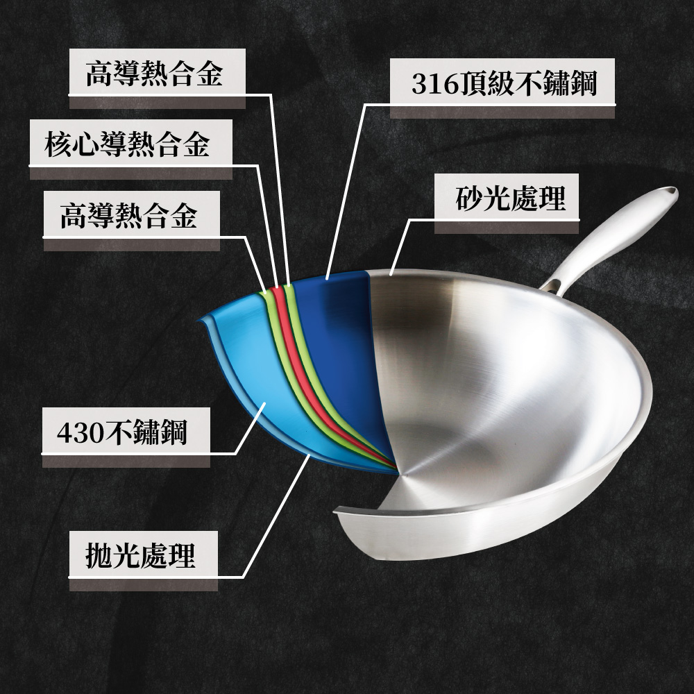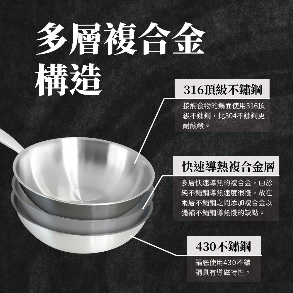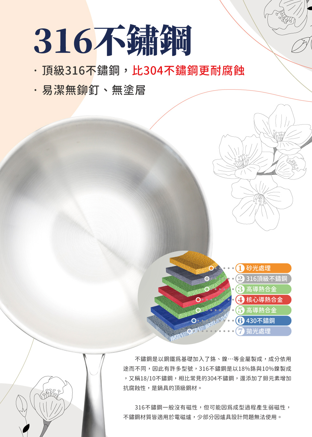 ◆鍋身材質:內層採用316不鏽鋼,外層採用430導磁性不鏽鋼。