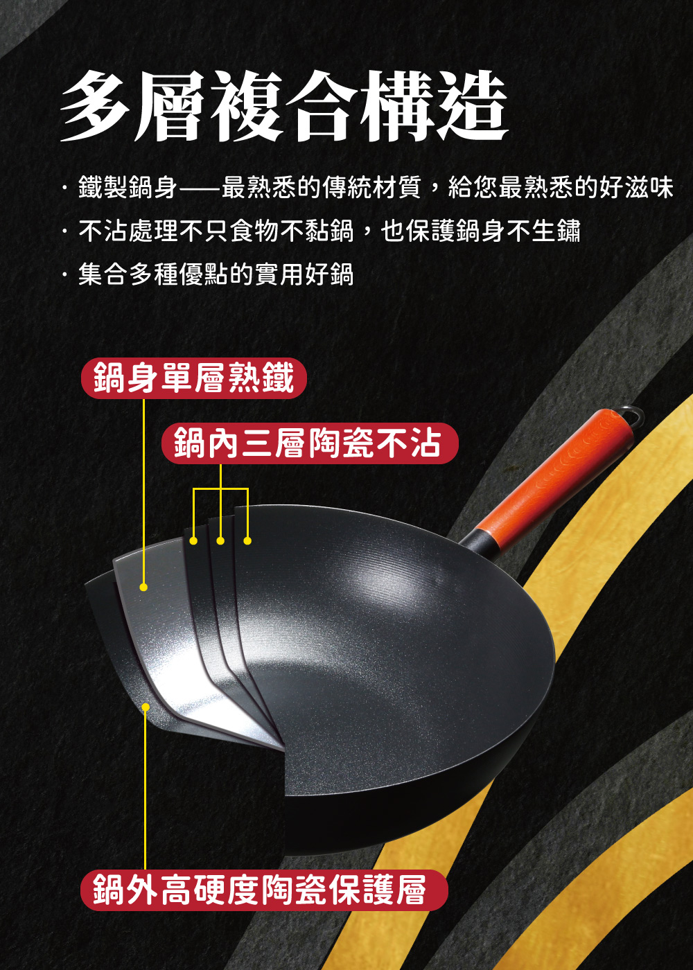 ※比傳統大鐵鍋更輕量的設計,像職人般輕鬆翻炒,好拿好用好料理。