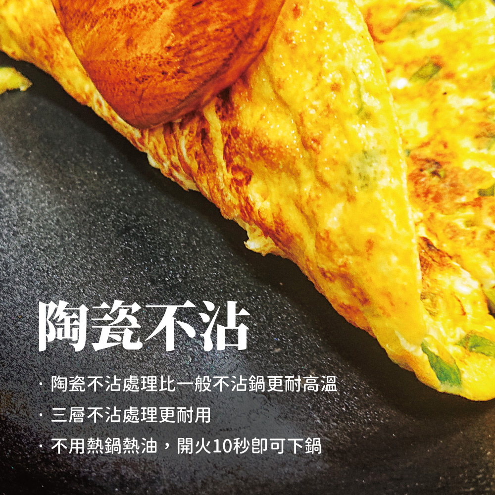 ※免熱鍋熱油,加熱10秒鐘即可下鍋,不沾不黏快速便利。
