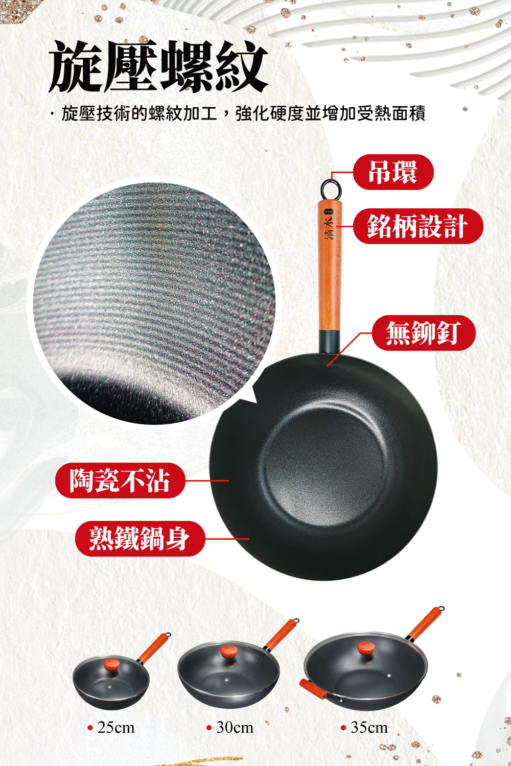 ◆鍋身材質:熟鐵、陶瓷不沾。