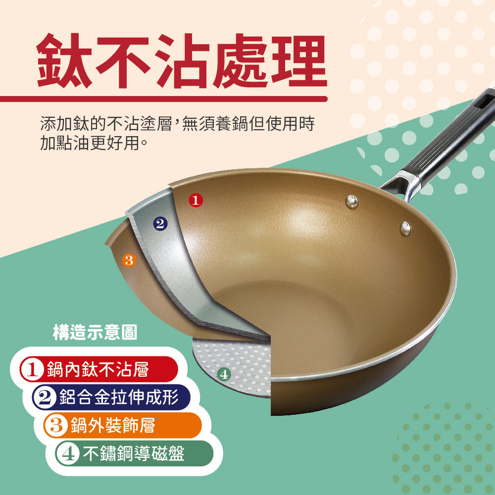◆鍋身材質:鋁合金鍋身、鈦不沾處理。