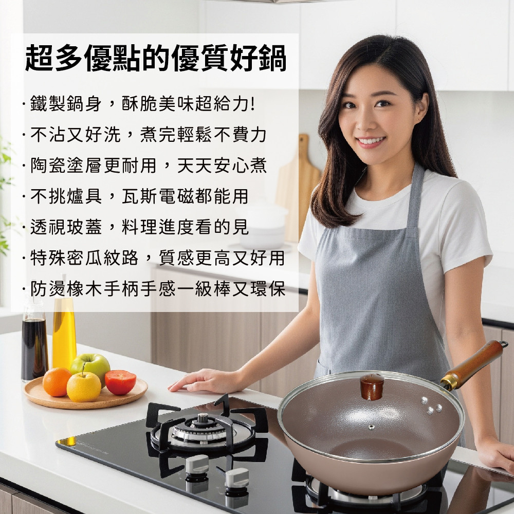 ◆鍋身材質:鐵製鍋身、陶瓷不沾處理。