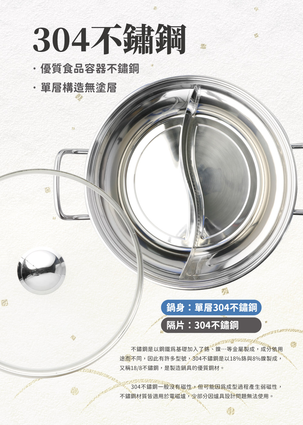 ※鍋身為單層304不鏽鋼製造,安全可靠無化學塗層。