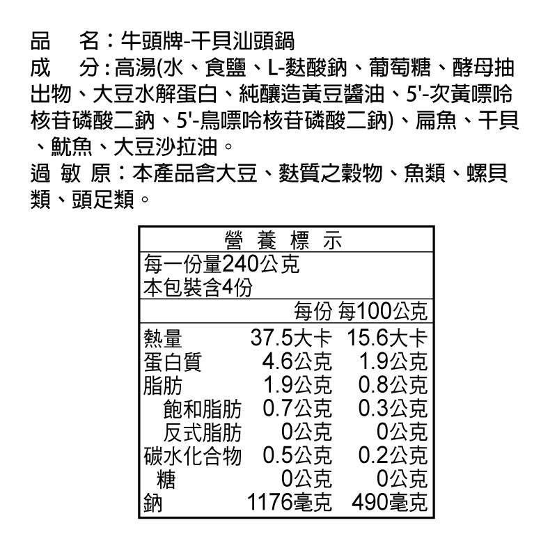 ◎品牌:牛頭牌 ◎規格: 960g克 x 1 x 1Bag袋