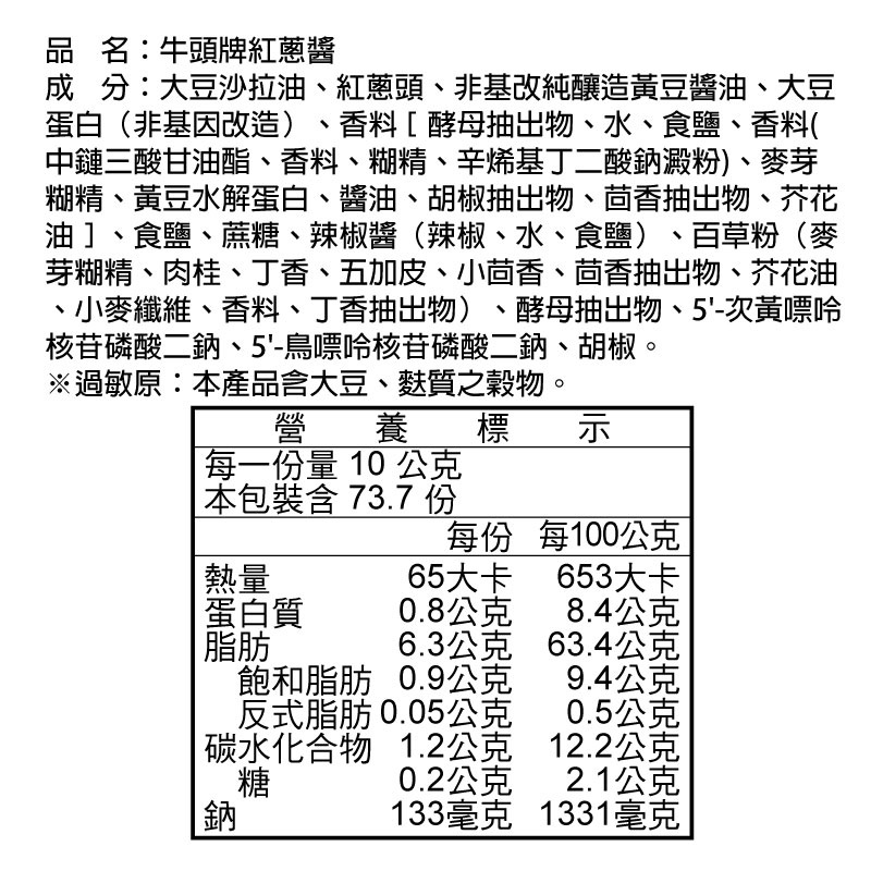 ◎品牌:牛頭牌 ◎規格: 737g克 x 1 x 1Can罐