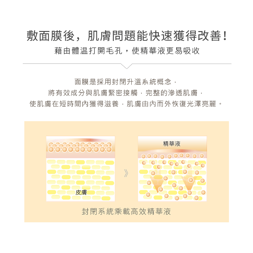 ★採用封閉升溫系統 將成分完整滲透肌膚