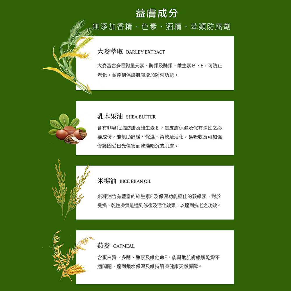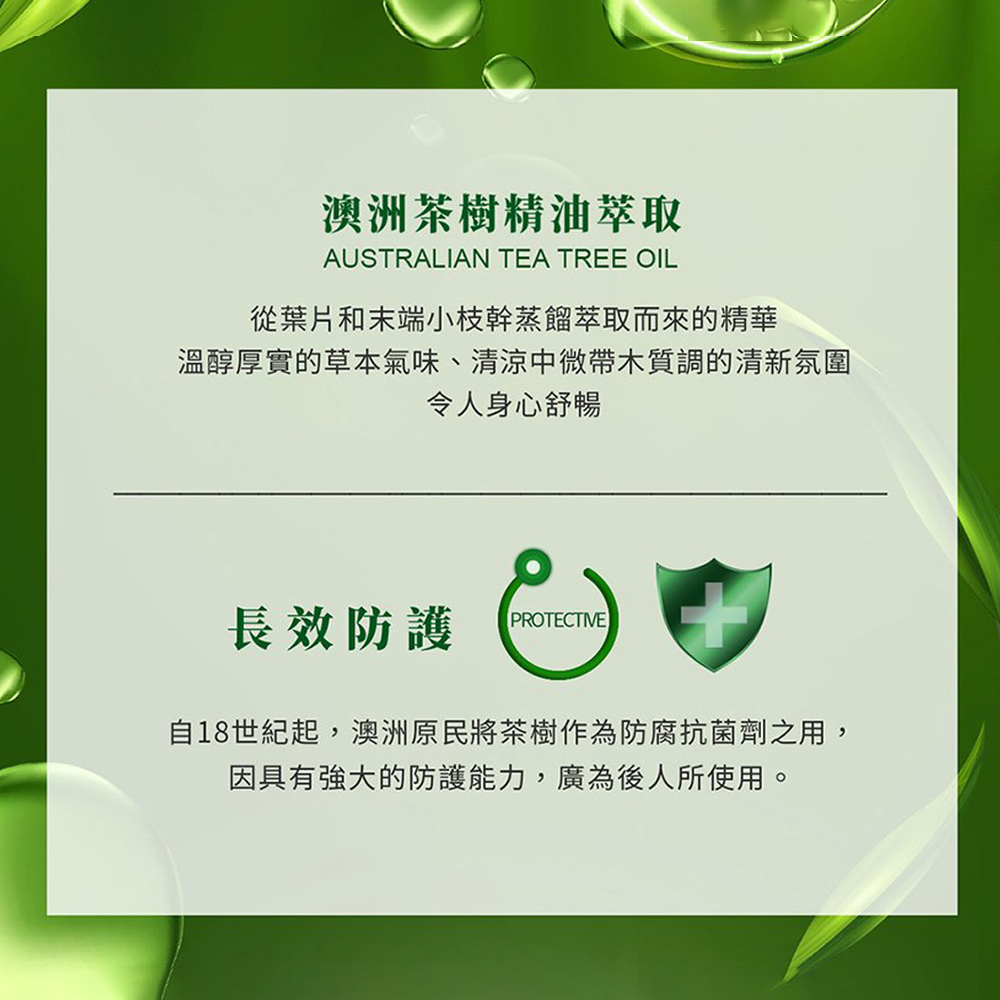 ★含茶樹精油、乳木果油及燕麥滋養★具有防護保濕成分 可修護手部乾燥現象★澳洲茶樹精油萃取 清涼中微帶木質調的清新氛圍★乳木果油 為肌膚保濕及保有彈性之必要成分★大麥萃取 防止肌膚老化★米糠油豐含維生素E及殼維素 預防皮膚乾裂