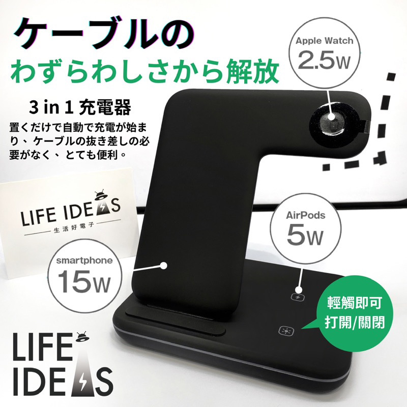 【生活好電子】三合一充電器 充電盤(蘋果 安卓手機都能用!)IPhone 8-17 Watch6-10 Airpods MagSafe Type-c - 太空黑