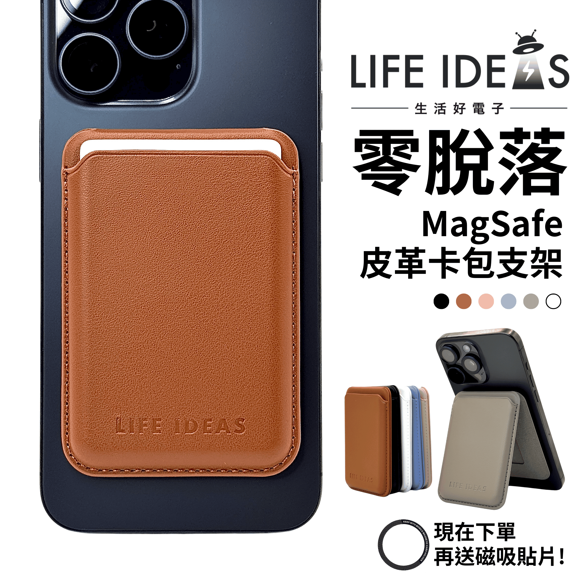 【生活好電子】手機卡套x支架 零脫落 17ProMax 也不脫落!MagSafe 磁吸式支架 皮革質感 卡套 卡包 卡夾 適用iPhone/Android-紳士黑