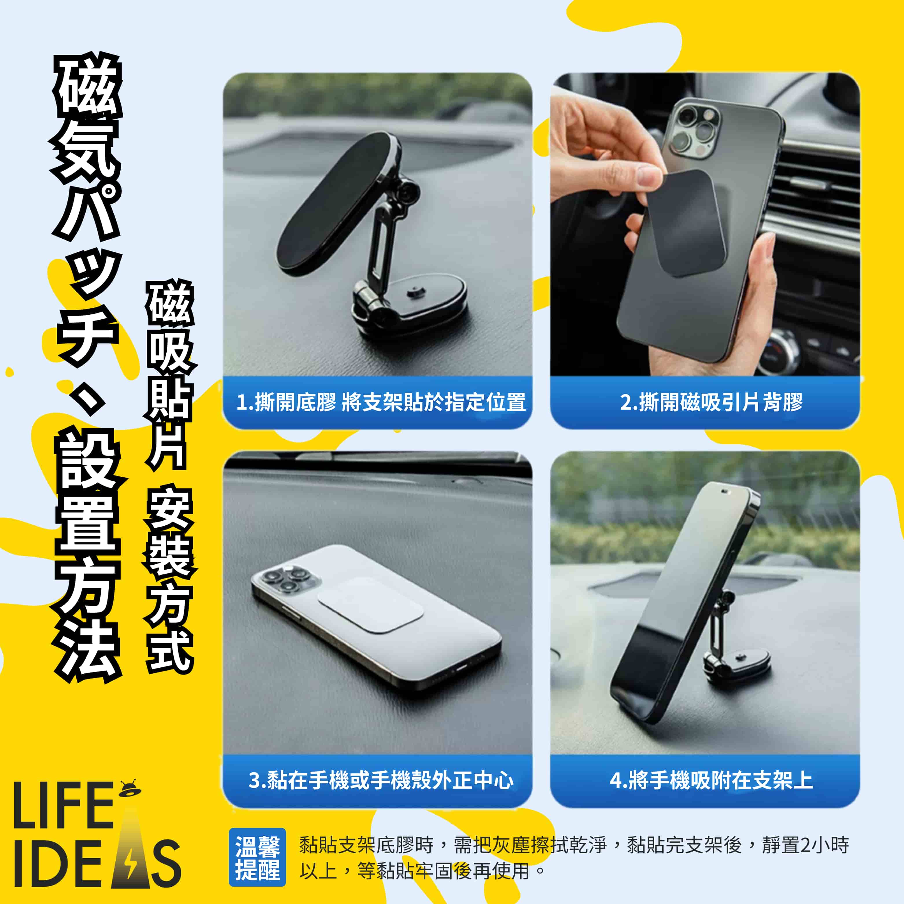 產品內容:磁吸1440°支架x1+磁貼引片x2(免費附贈)