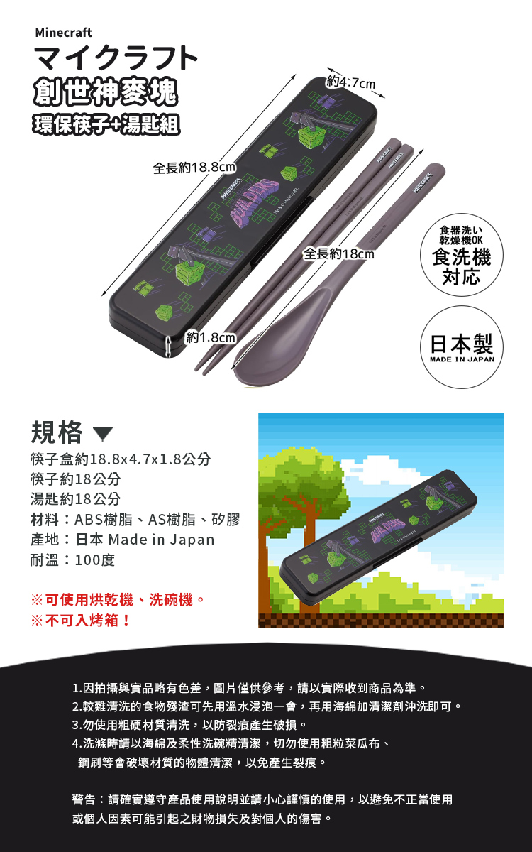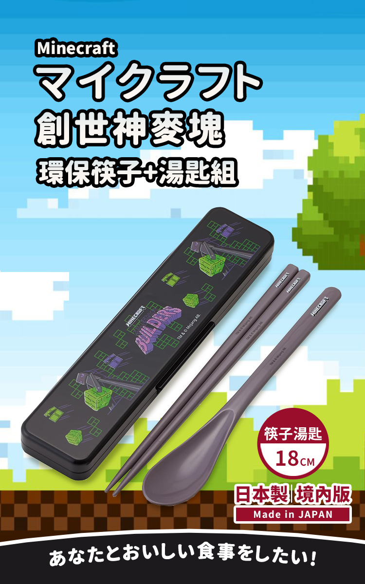 【百科良品】日本製 我的世界 創世神 Minecraft 麥塊 環保筷子+湯匙組 18CM(日本境內版)