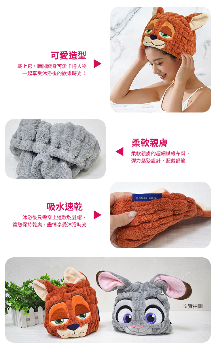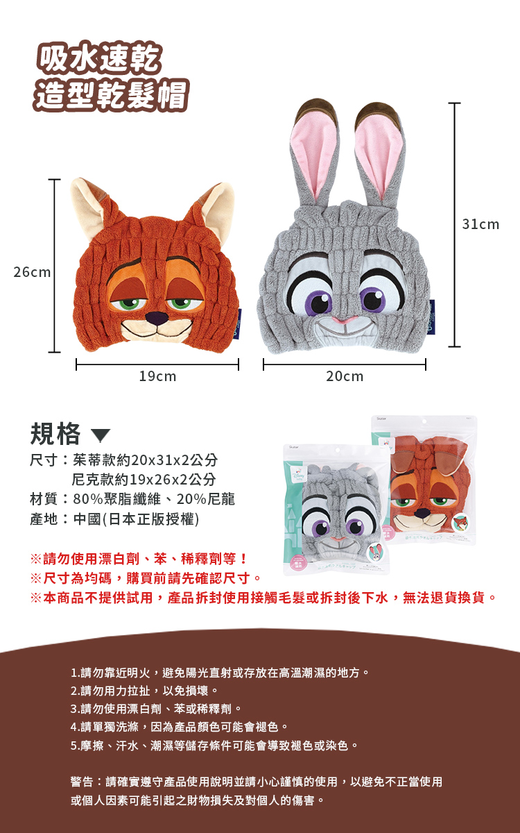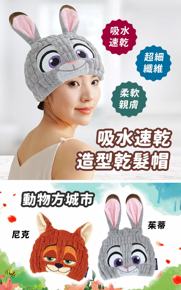 【百科良品】迪士尼 動物方城市 吸水速乾 造型吸水髮帽 包頭巾 浴帽 乾髮帽(日本境內版)