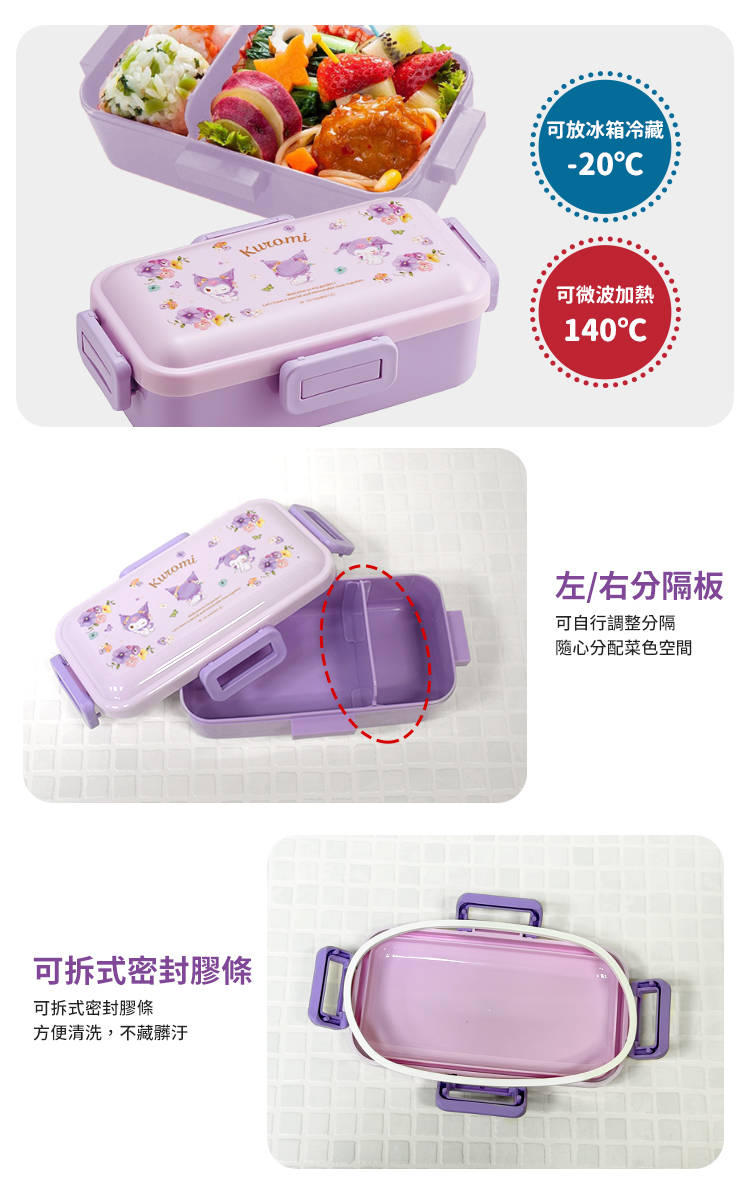 ●日本製 境內版●外出旅行、野餐出遊適用●內含左右分隔板(可自行分隔)●可耐溫140度,可微波 不可進烤箱●4點扣點固定