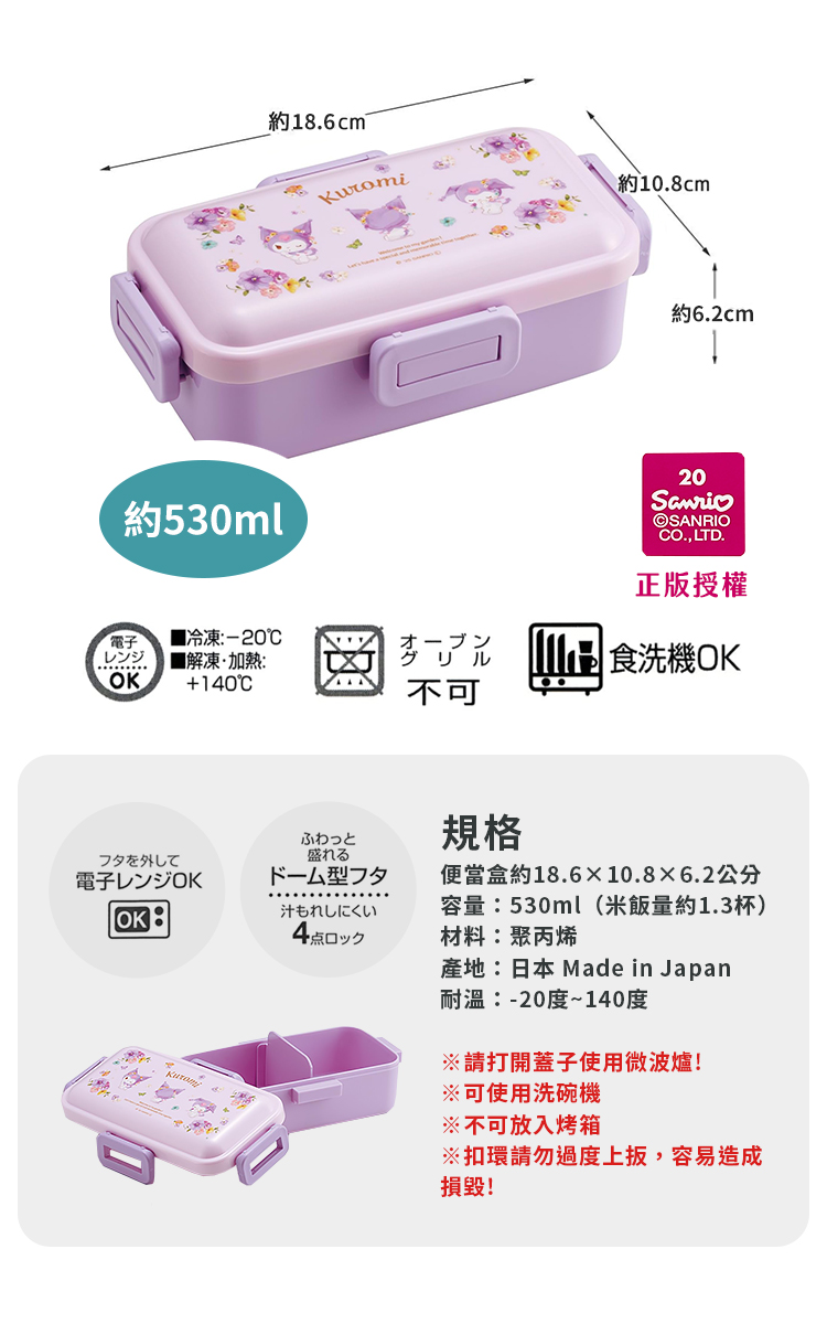 日本 Made in Japan (境內版) 日本正版授權到了午休時間,拿出酷洛米便當盒 超可愛又精緻日本製餐盒,三麗鷗迷必備,日本OL、女孩最愛。