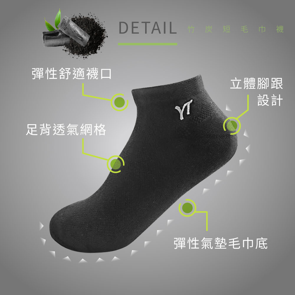 【皇家竹炭】YT 竹炭男短毛巾襪 黑色