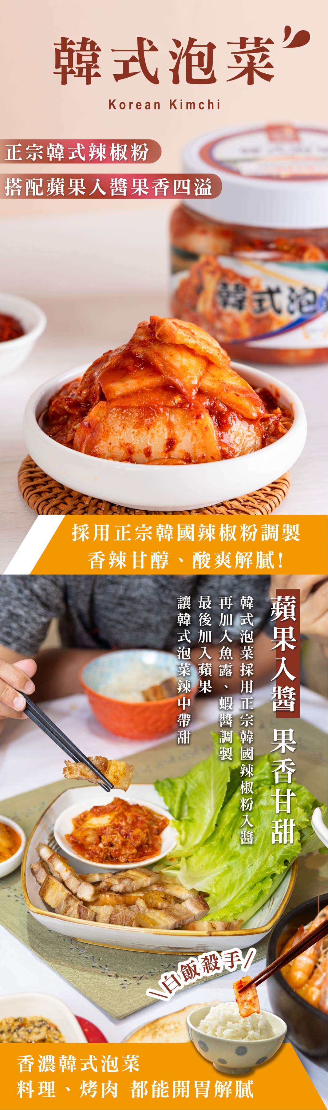 產品成分 : 大白菜、水、辣椒粉、洋蔥、糖、蘋果、蒜頭、糯米粉、鹽、竹薑、蝦醬【蝦、鹽】、魚露【鯷魚、鹽水(水、碘鹽(食鹽、碘化鉀))、糖】、辣椒 產品成分 : 海帶芽、醋【水、糯米】、香油【芝麻油】、蒜頭、砂糖、紅蘿蔔、牛肉粉【鹽、調味劑(L-麩酸鈉)、白砂糖、玉米澱粉(玉米)、混合牛肉粉(鹽、牛肉粉(澳洲)、白砂糖、洋蔥粉、蒜粉)、牛肉調味粉〔牛肉(澳洲)、牛脂(澳洲)、醬油(水、鹽、大豆、小麥、果糖、酒精)〕、調味粉(糖粉、胡椒粉、洋蔥粉、蒜粉)、牛脂(澳洲)、牛肉濃縮液〔牛肉萃取液(牛肉(澳洲))、牛骨萃取液(紐西蘭)〕、醬油粉(鹽、大豆、小麥、果糖)、蒜濃縮液】、芝麻粒、抑菌劑【醋酸鈉(無水)、胺基乙酸、檸檬酸】、鹽