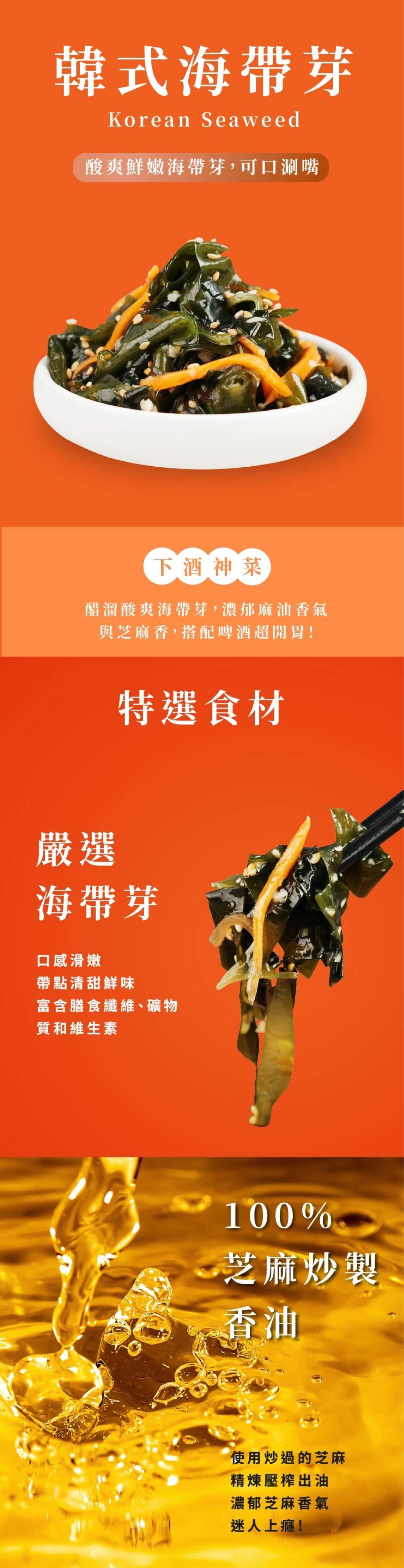 以蘋果、洋蔥等入醬,韓國辣椒粉醃製,辣中帶果香韓式海帶芽