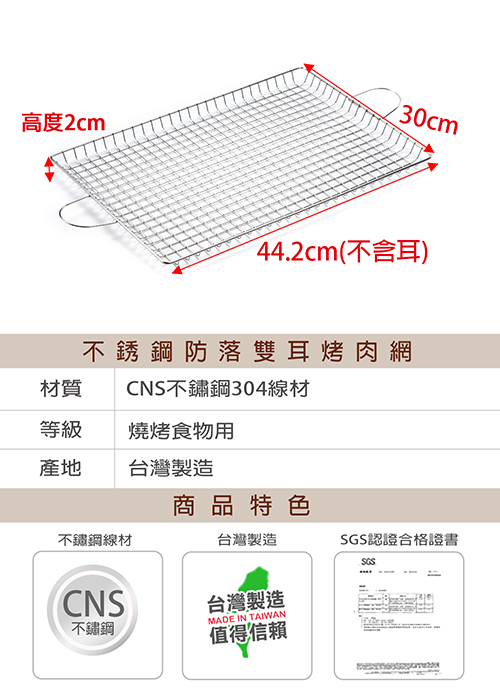 ■2公分凹網設計,食材穩穩落在網上,不易掉進火裡。