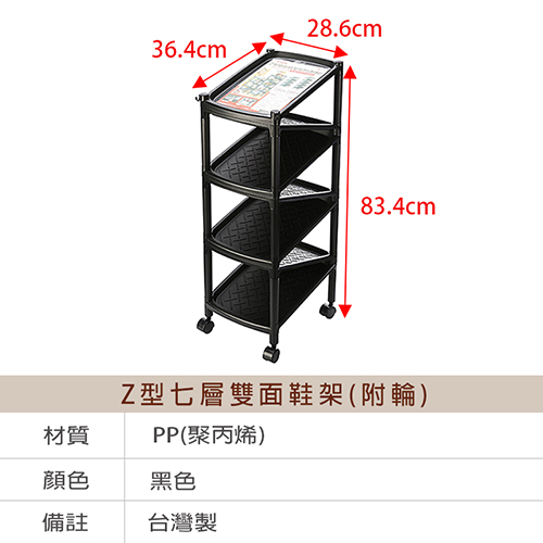 【真心良品】KEYWAY聯府 Z型七層雙面鞋架(附輪)-1入