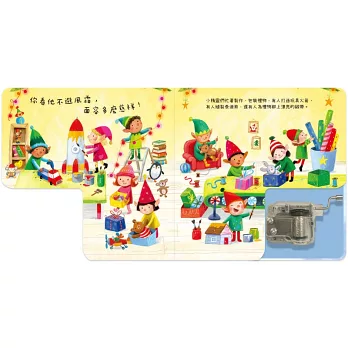 發條音樂盒 × 經典童話 × 美麗插畫 × 互動體驗轉一轉、聽一聽,轉動發條,一起迎接最溫暖、最夢幻的聖誕節! 轉動發條音樂盒, 聆聽充滿節慶氛圍的〈聖誕鈴聲〉, 並和聖誕老公公一起踏上聖誕冒險之旅吧!本書特色 《轉吧轉吧發條音樂盒》系列結合節慶故事、精美插畫與音樂互動的精裝硬頁書,是親子共讀、認識聖誕歌曲的最佳選擇。跟著優美旋律,一頁頁跟著聖誕老公公準備禮物,讓孩子感受聖誕節的溫馨與奇蹟! ▓ 內建發條音樂盒 轉動書內的機械式發條,就能播放最膾炙人口的聖誕歌曲〈聖誕鈴聲〉,不需要電池,操作簡單又安全。音樂一響起,彷彿看見馴鹿雪橇即將出發,聖誕老公公正在空中呼嘯而過! ▓ 啟蒙音樂素養 以轉動發條的互動式方式呈現音樂,能自然吸引孩子注意力,提升他們對旋律與節奏的敏銳度。從小接觸節慶音樂,有助於孩子建立節奏感與音感,透過動手轉動發條的過程,提升參與感與互動性。此外,書中附上歌詞,孩子能一邊聽、一邊唱,提升語言節奏感與參與樂趣! ▓ 堅固的硬頁設計 專為兒童設計的精裝硬頁書,書頁厚實、邊角圓潤,讓孩子在自己翻閱的過程中也能安心使用,不怕撕破或折損。結合高質感封面與耐翻結構,不僅適合日常閱讀,也適合作為收藏或贈禮珍品。 ▓ 細膩夢幻的插畫風格 由英國知名插畫家 Ag Jatkowska 精心繪製,全書充滿聖誕紅、松樹綠與白雪紛飛的柔和色調,場景中有聖誕老公公、聖誕老奶奶、小精靈、馴鹿、雪人等經典角色,是孩子最期待的節日視覺饗宴!