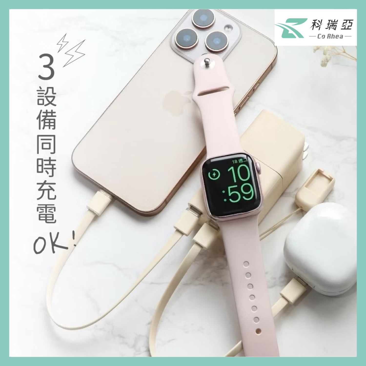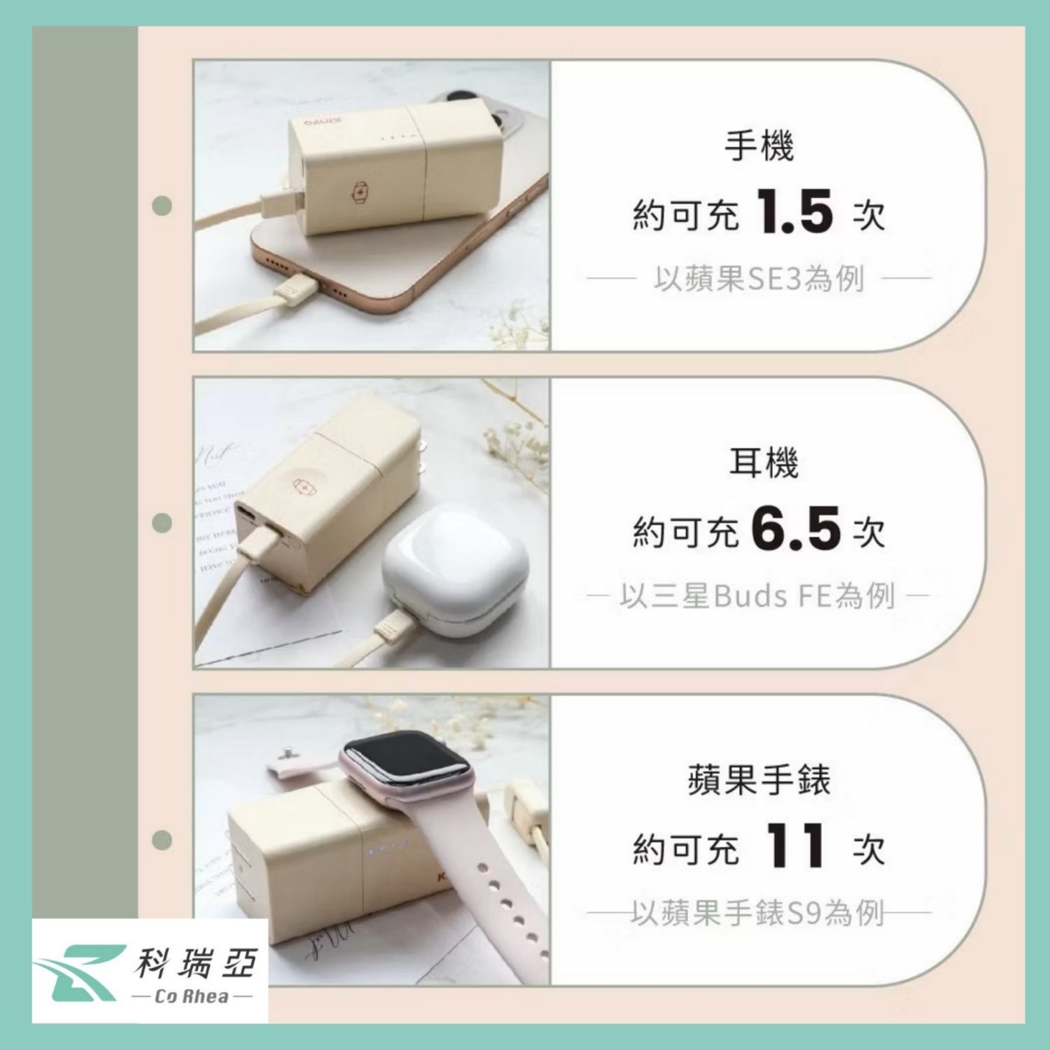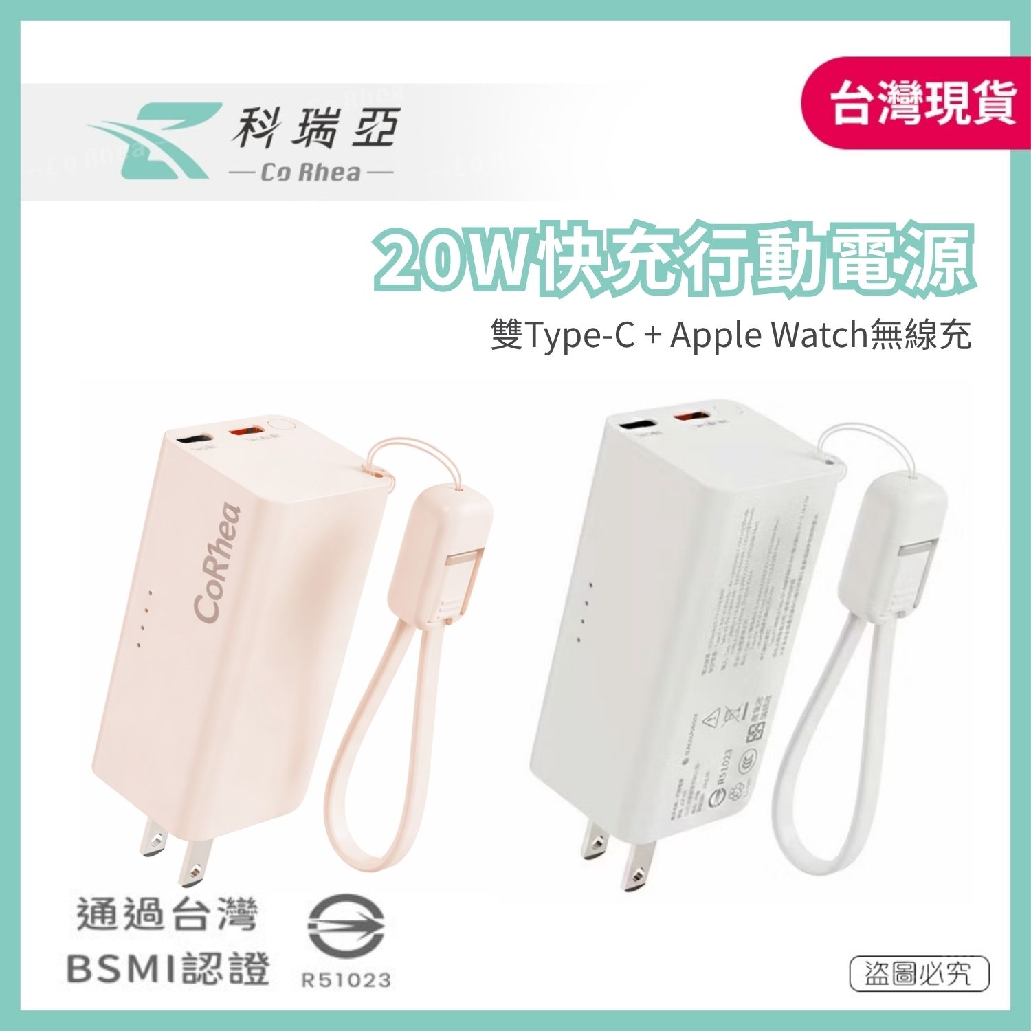 ⚡ CoRhea 5000mAh 20W快充行動電源|雙Type-C+Apple Watch無線充|白色 / 淺橘