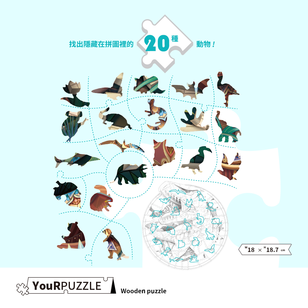[積木共和國] 【YouRPUZZLE】圓形恐龍(檢驗合格 不規則木製拼圖)