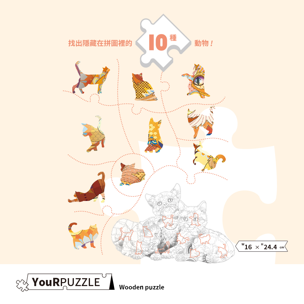 [積木共和國] 【YouRPUZZLE】台灣現貨三隻橘貓拼圖(檢驗合格木質動物拼圖)