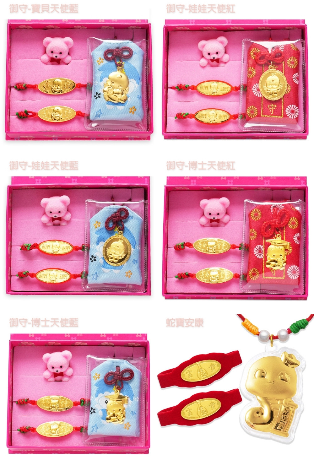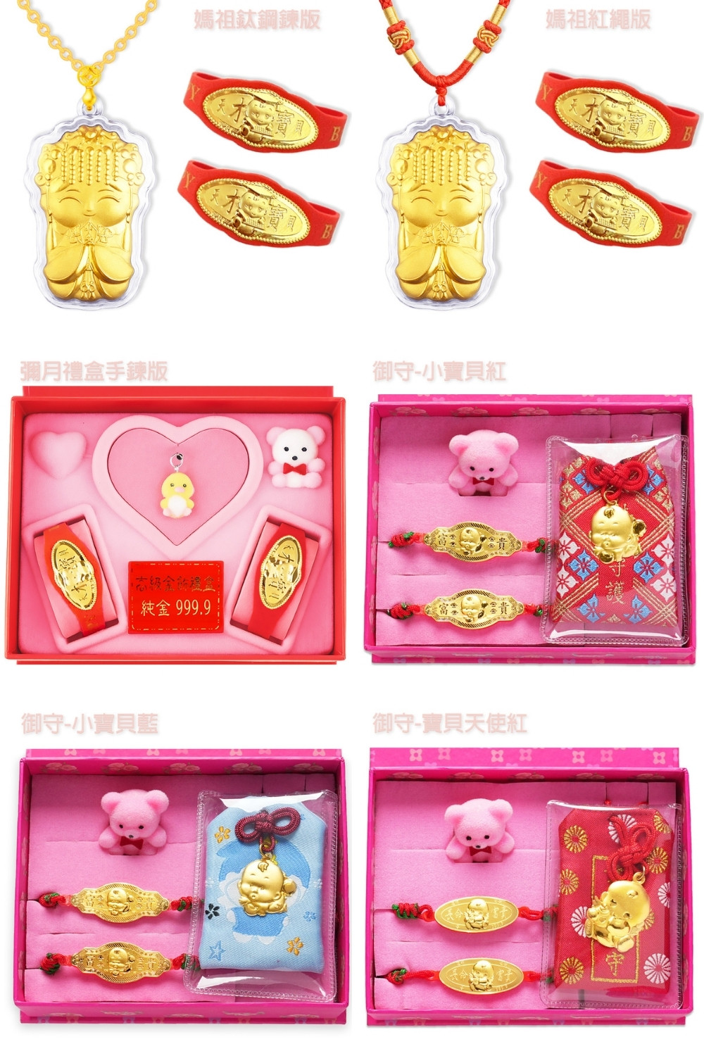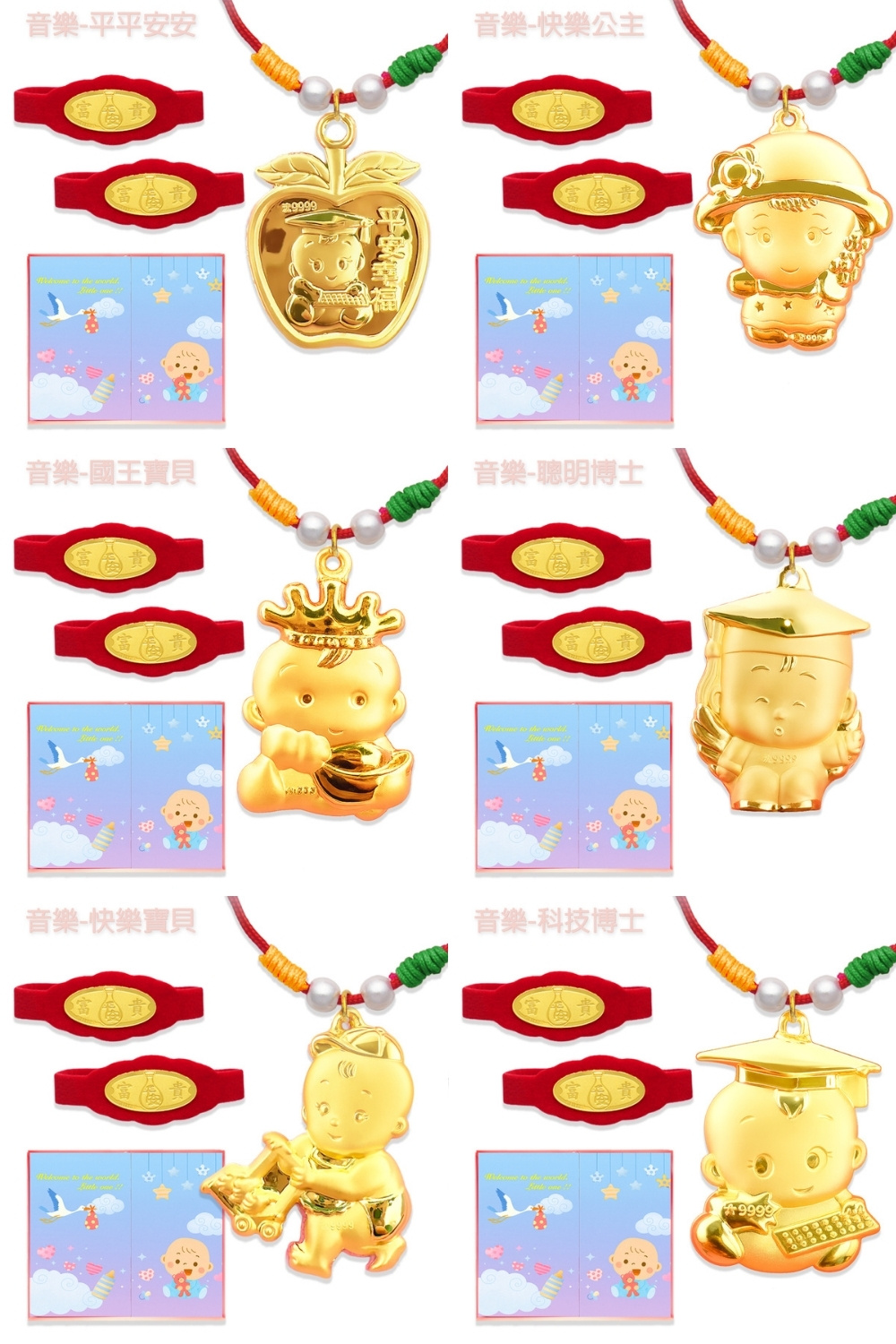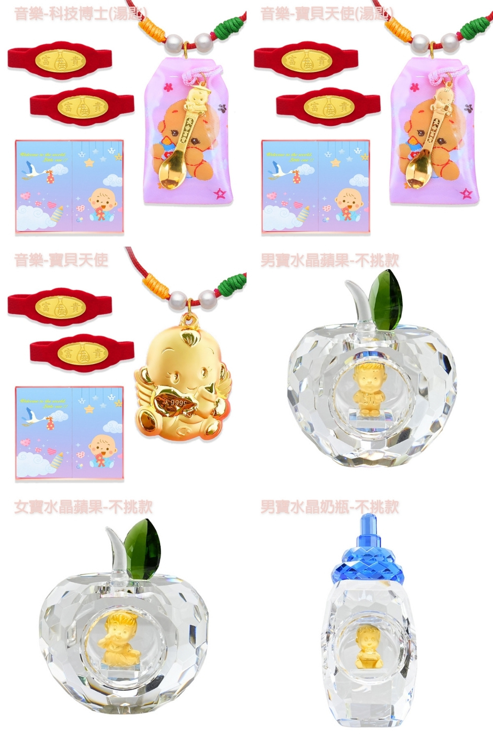 名稱:彌月黃金禮盒 兒童套組多選 約重0.1錢 (999純金 滿月 御守 音樂禮盒 水晶)