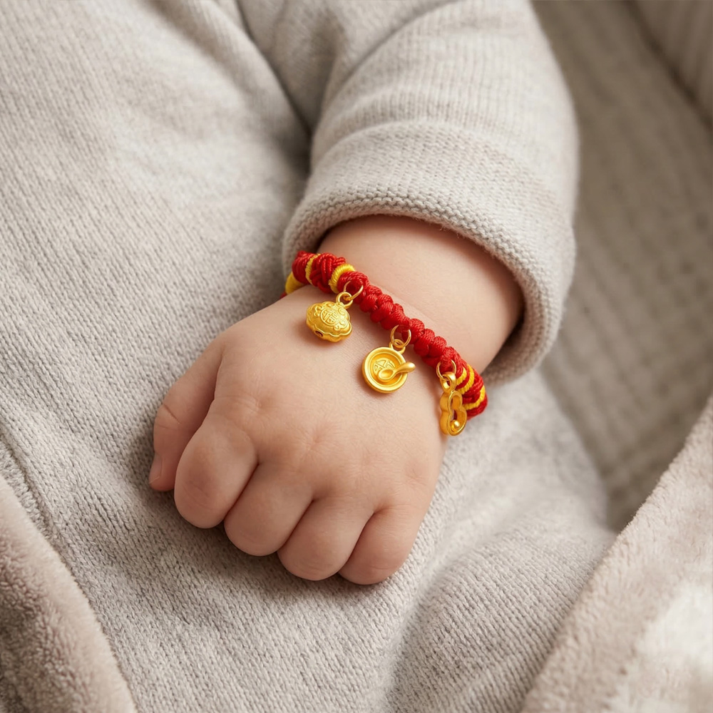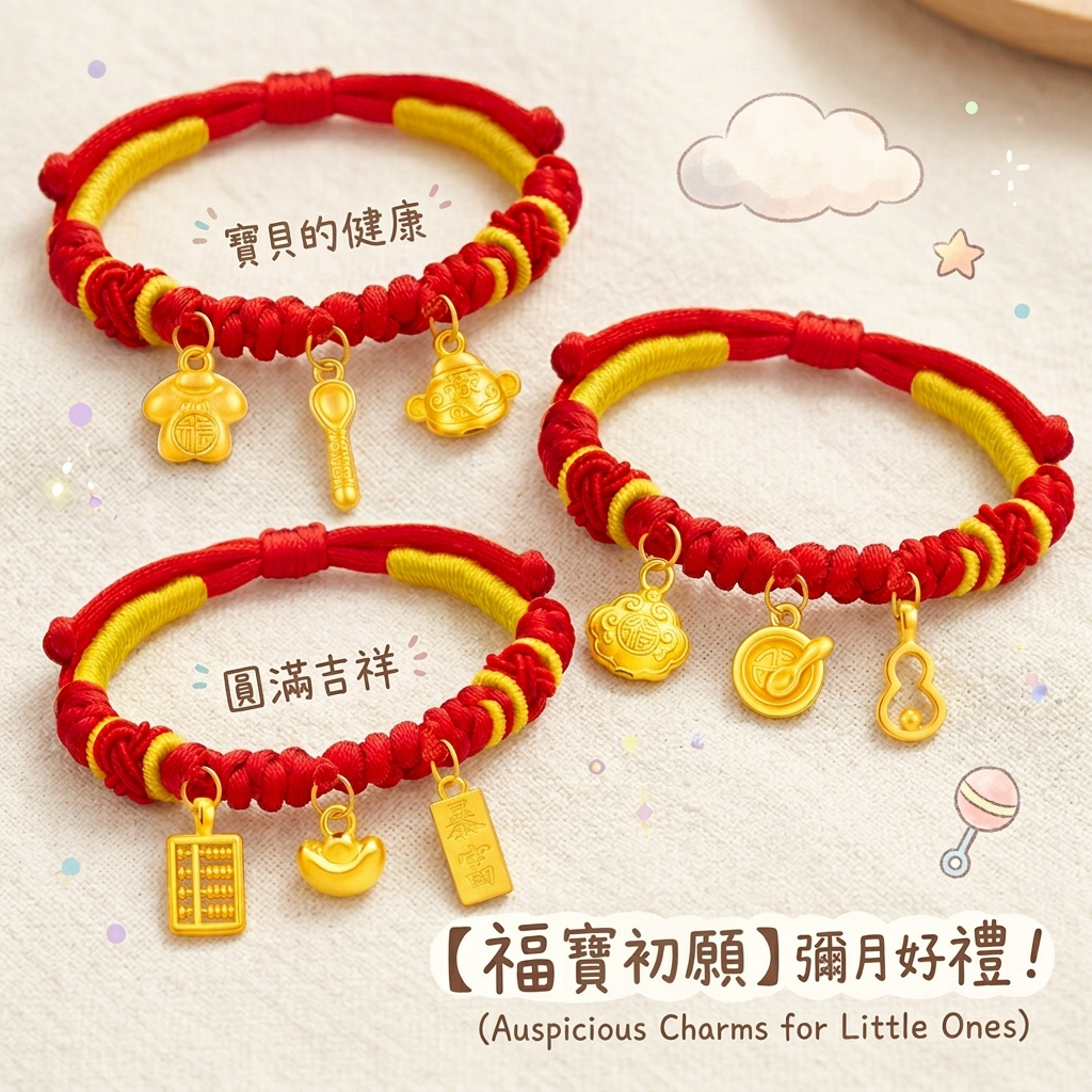 名稱:福寶初願 兒童紅繩手鍊 附贈馬年平安符 約重0.13錢±0.03 (彌月金飾 彌月禮 黃金999)
