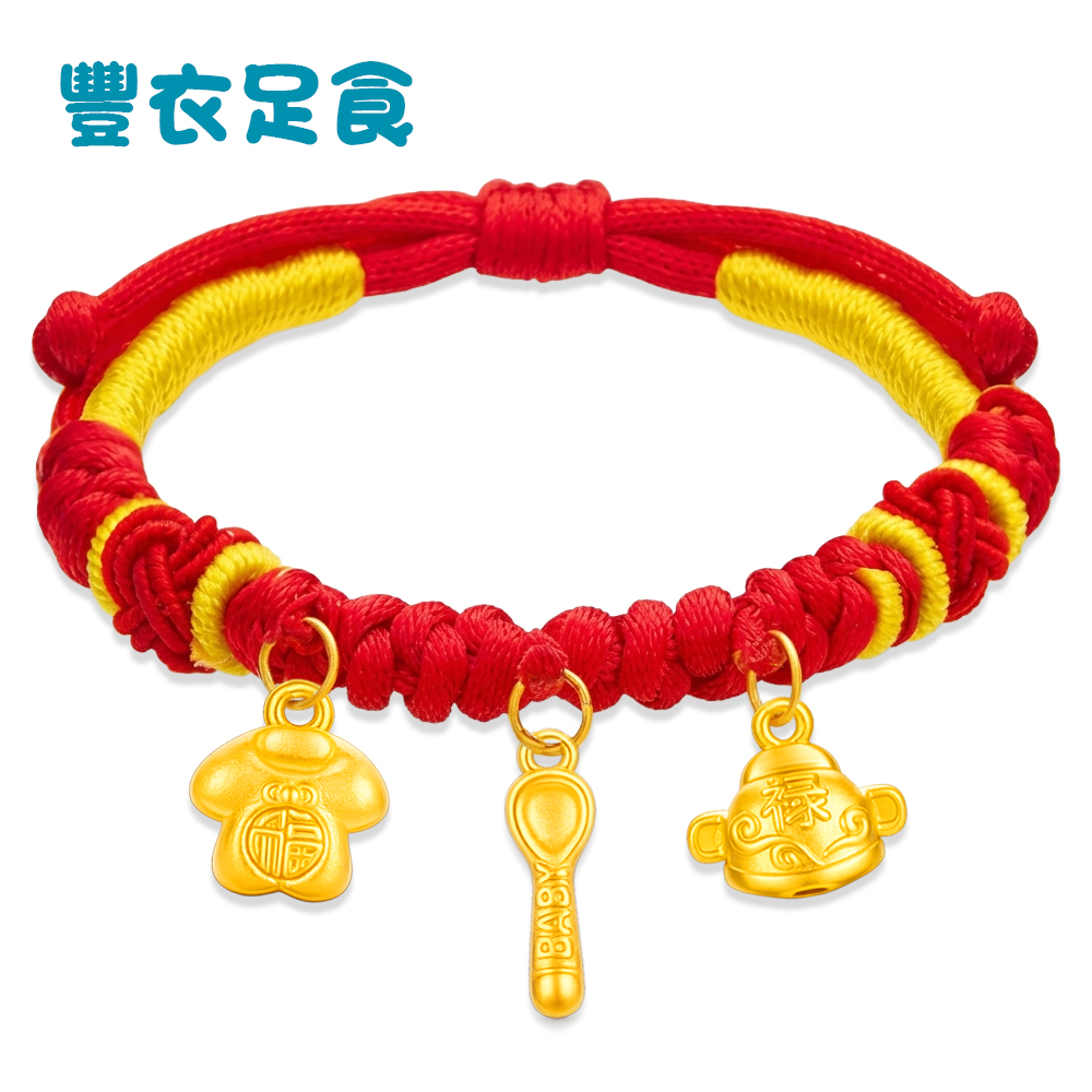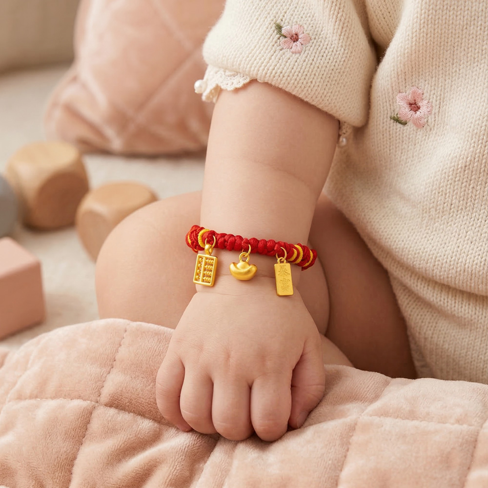 【童樂繪金飾】福寶初願 兒童紅繩手鍊 附贈馬年平安符 約重0.13錢±0.03 (馬年 滿月禮 彌月黃金 抓週)