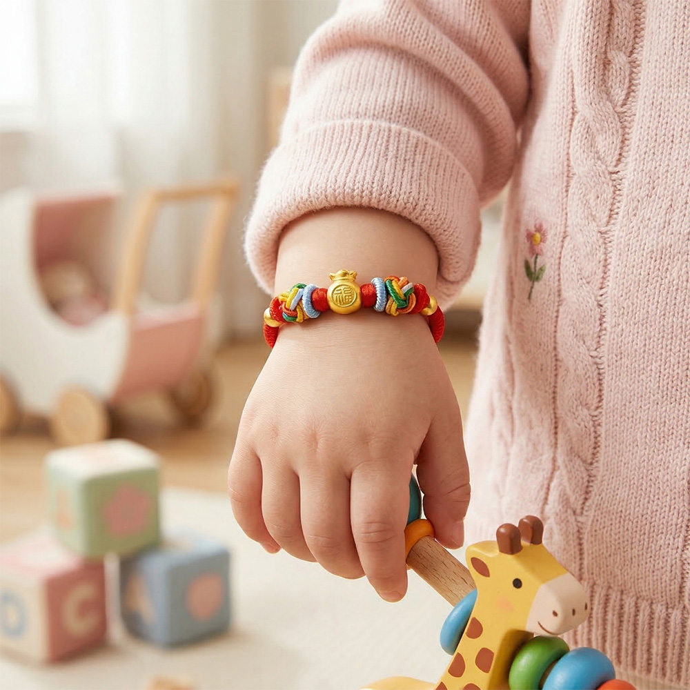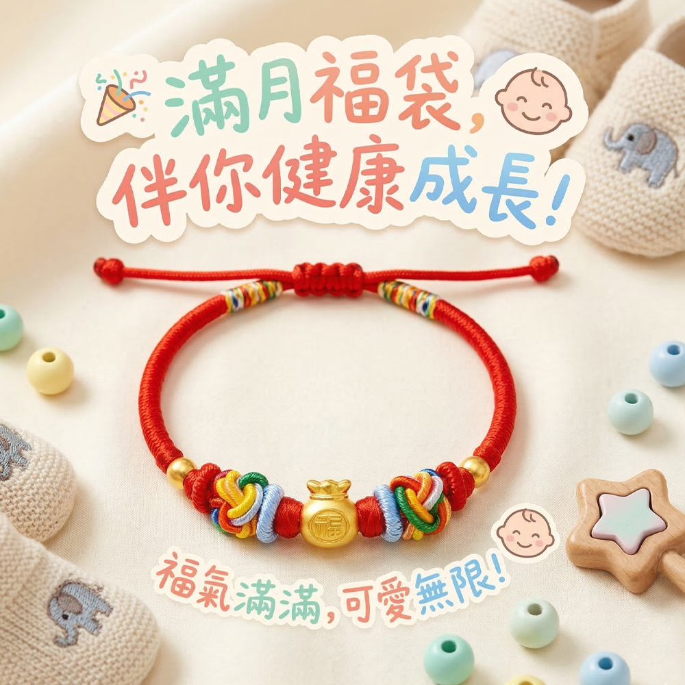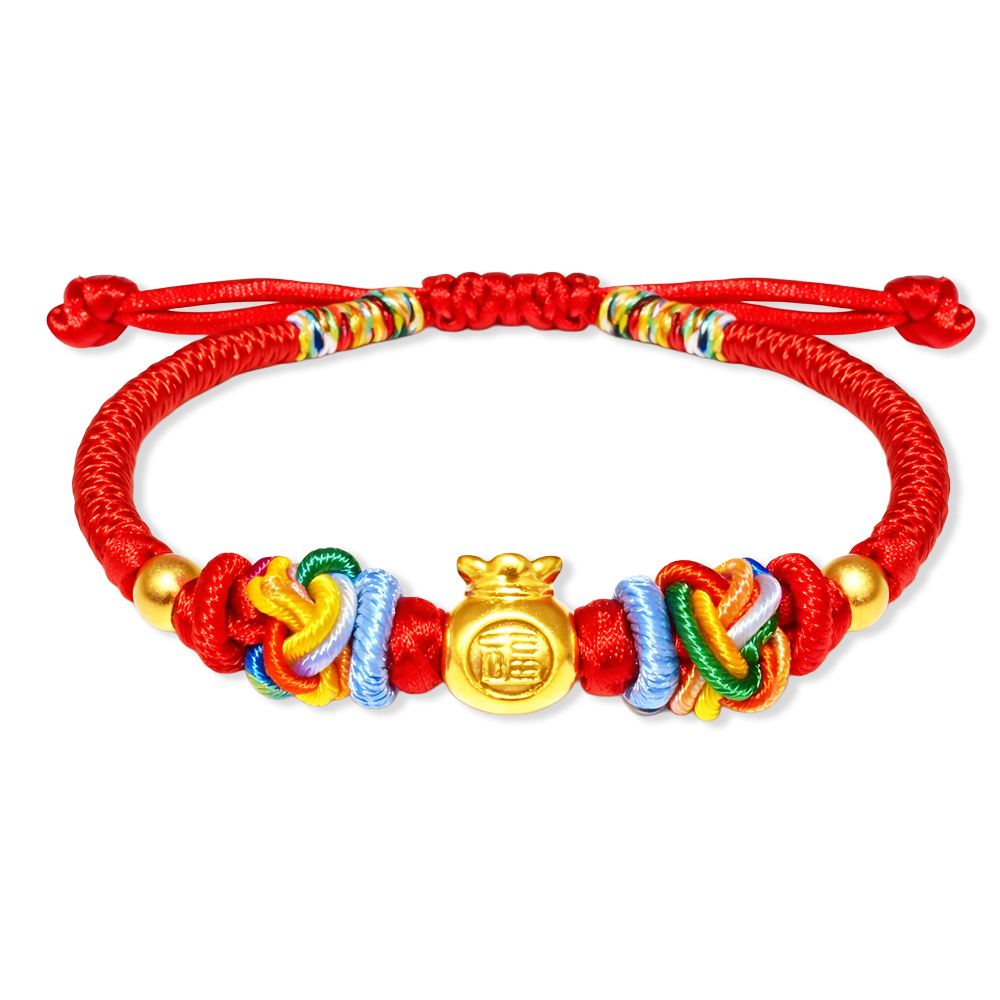 【童樂繪金飾】聚福金袋 兒童紅繩手鍊 約重0.05錢±0.02 (彌月金飾 彌月禮 黃金999)