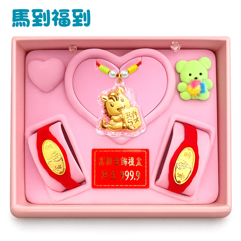 名稱:馬年彌月黃金禮盒 多選 約重0.1錢 附贈馬年平安符 (滿月 保平安 999純金)
