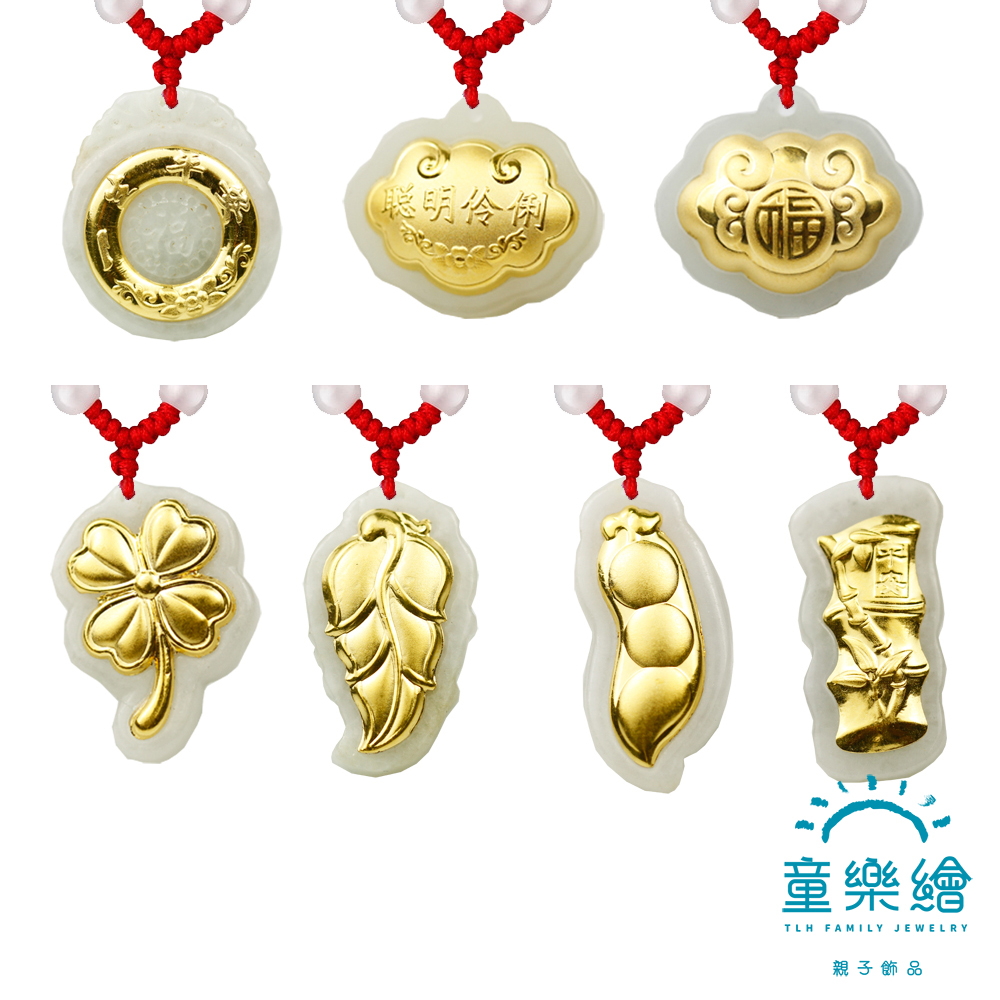 【童樂繪金飾】千足金和田玉項鍊 七款可選皆附紅繩 (彌月金飾 彌月禮)