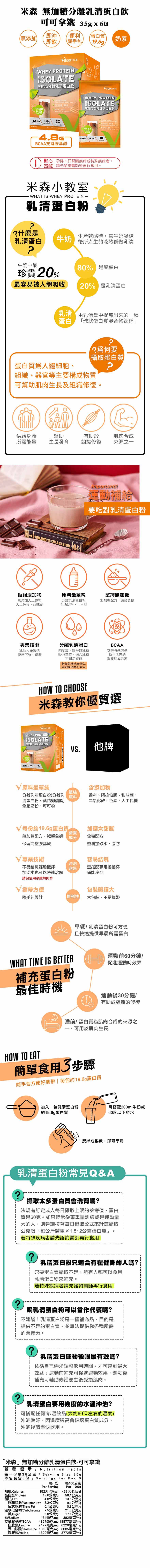 【米森 vilson】無加糖分離乳清蛋白飲-可可拿鐵(35gx6包/盒)