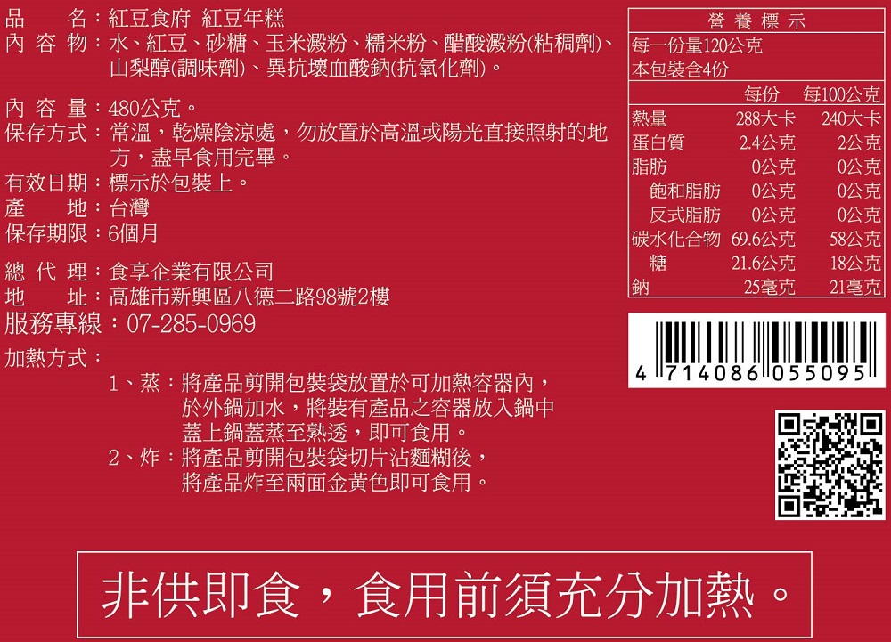 紅豆食府年糕-紅豆口味(每盒約480克)